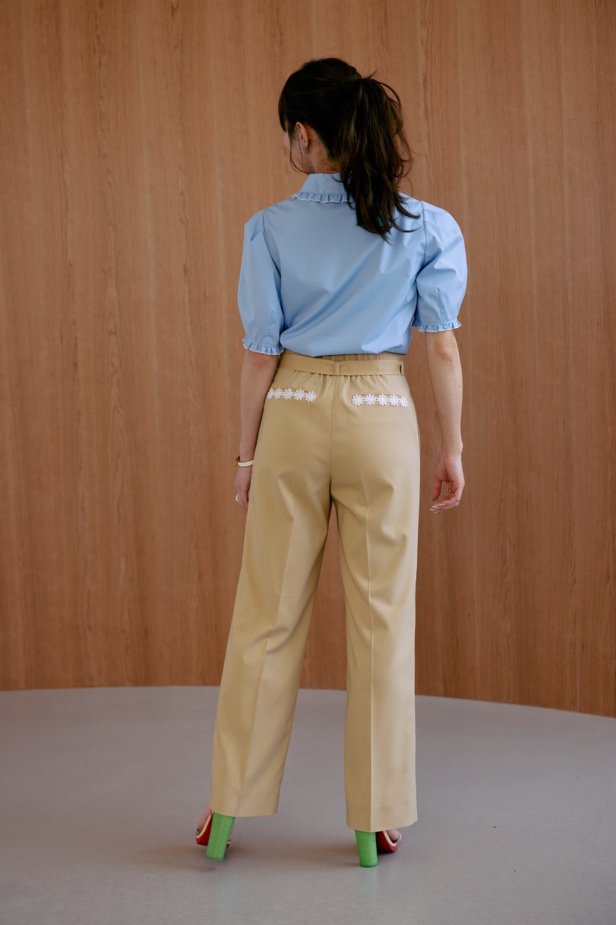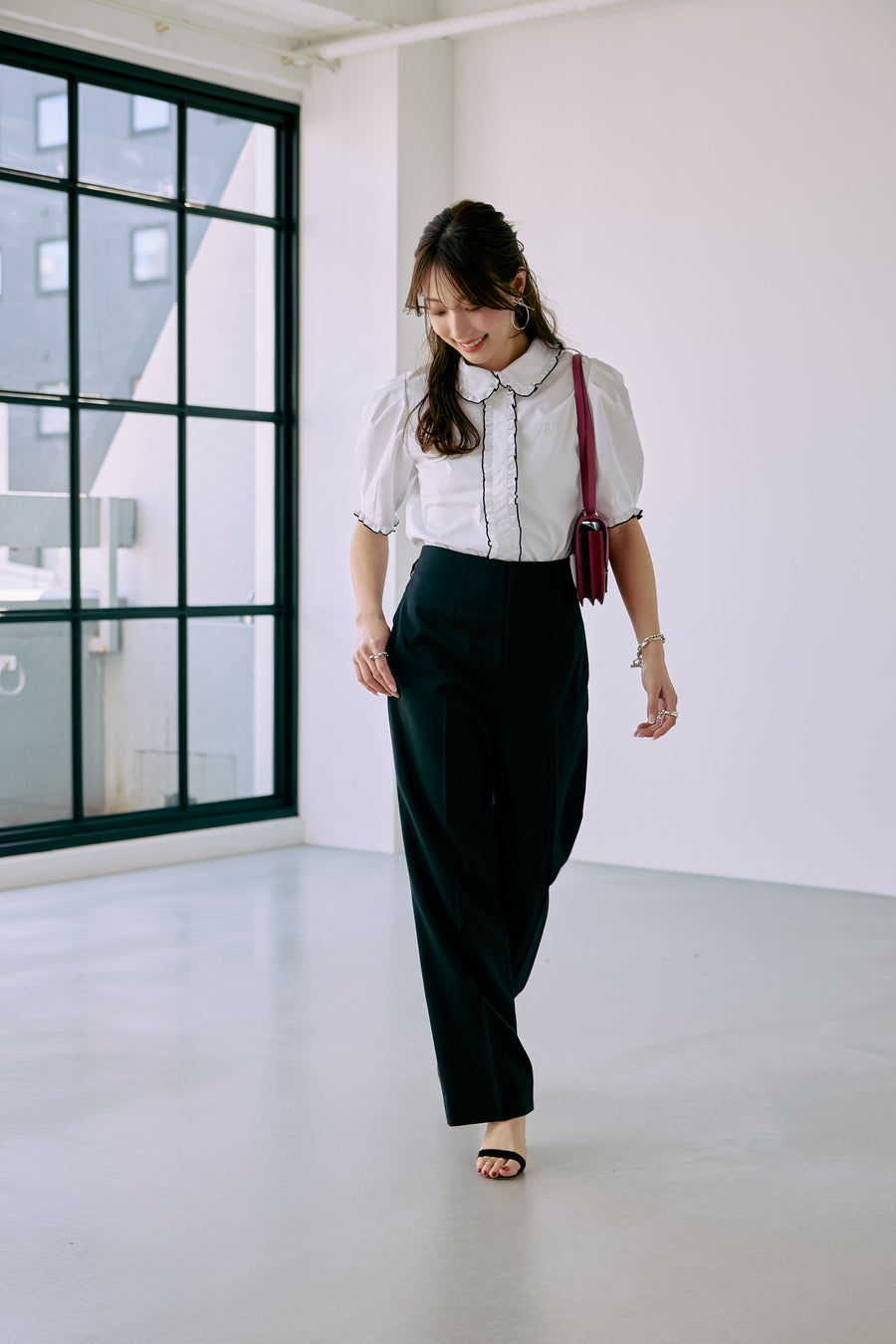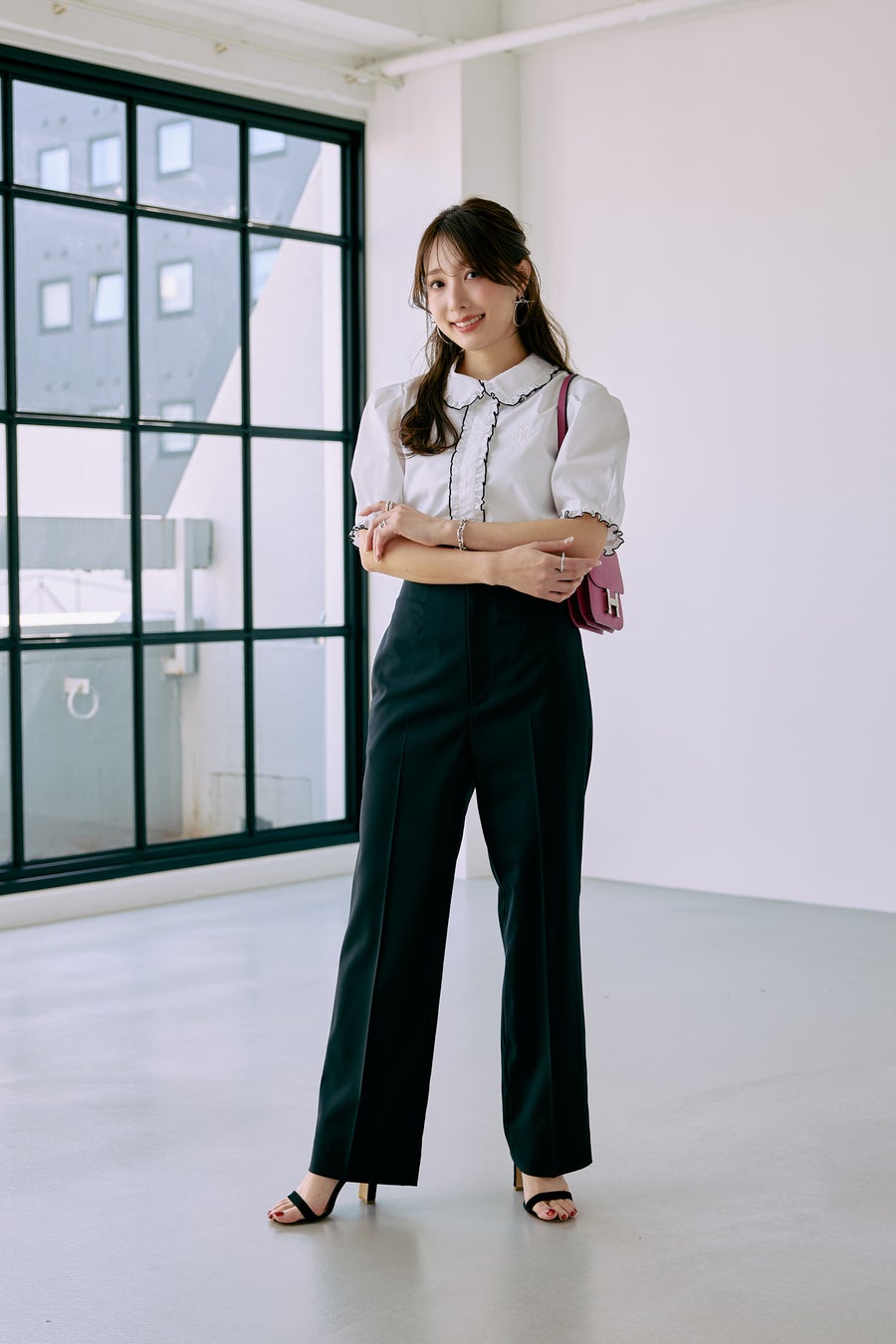 ブラウススタイルを引き立てる、洗練された美シルエットのストレートパンツ。