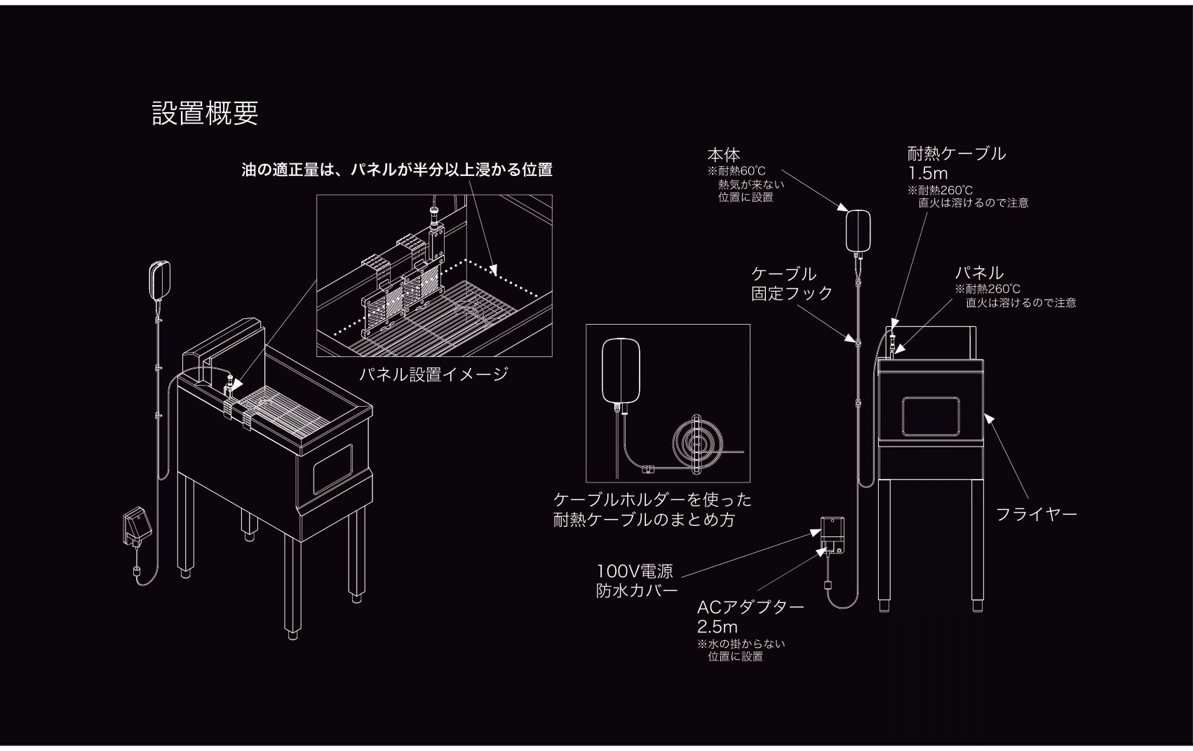 今お使いのフライヤーに後付けできる為、厨房設備を変更する事なく設置可能です。