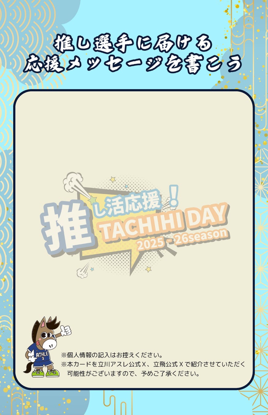 【立川アスレティックFC】10/13(月・祝)「推し活応援!TACHIHI DAY」開催!ファンの声を力に。お守りメッセージカードで推し選手に直接想いを届けよう!