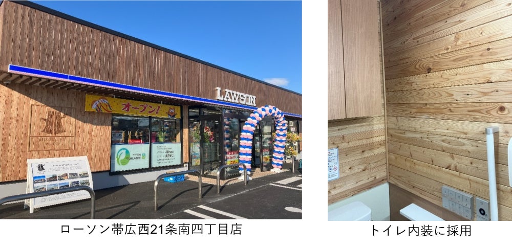 株式会社ローソン(本社:東京都品川区)は、北海道産の木材を内外装に使用したHOKKAIDO WOOD BUILDING※2登録店舗を北海道内に13店舗展開しています。今回オープンした「ローソン帯広西21条南四丁目店」では、トイレ内装のカラマツ羽目板にBENEBiOL™を原料とする塗料が採用されました。これはBENEBiOL™として初めての建材塗料への採用であり、木材に柔らかであたたかみのある質感を与えます。
