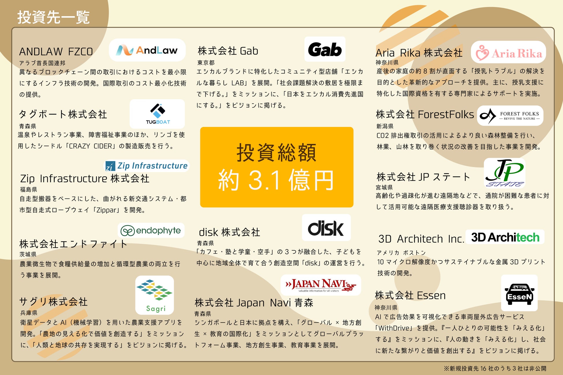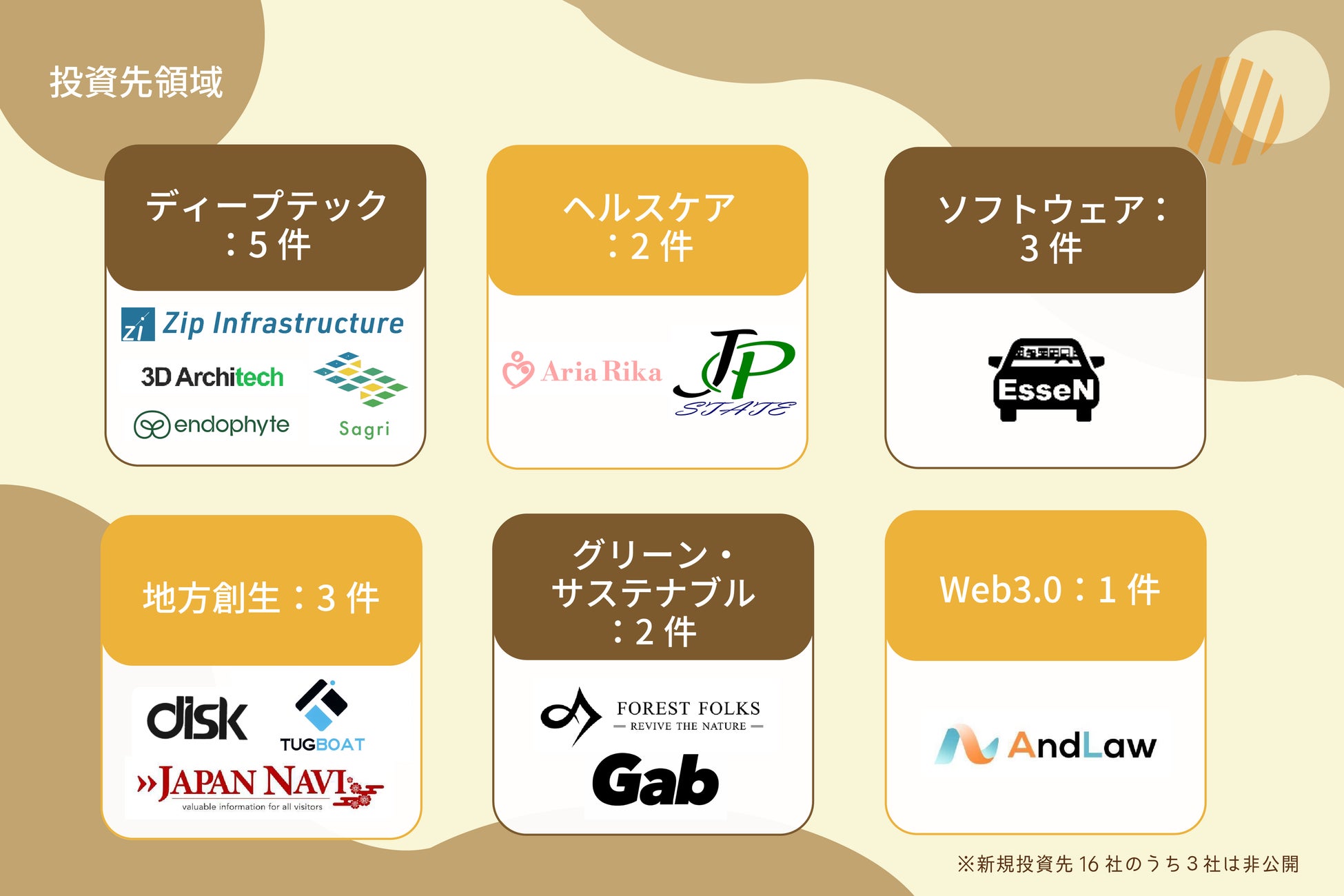 本レポートでは、各投資先の事業領域等の情報について整理し、当社の地域における1年間の活動を振り返るとともに、次年度へ向けた展望について公開いたします。