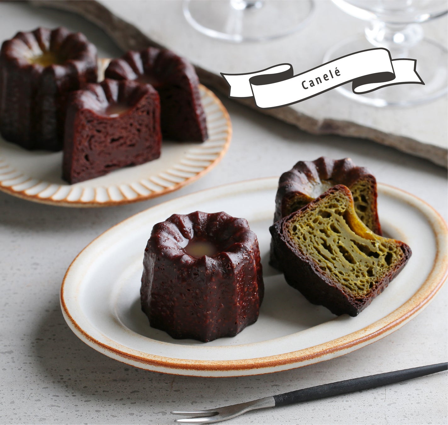 高圧蒸気で焼き上げたカヌレは、外はカリッと香ばしく、中はしっとりとした食感が特徴です。『バニラ』『チョコレート』『宇治抹茶』の3つの風味をご用意しました。お好みに合わせてお楽しみください。