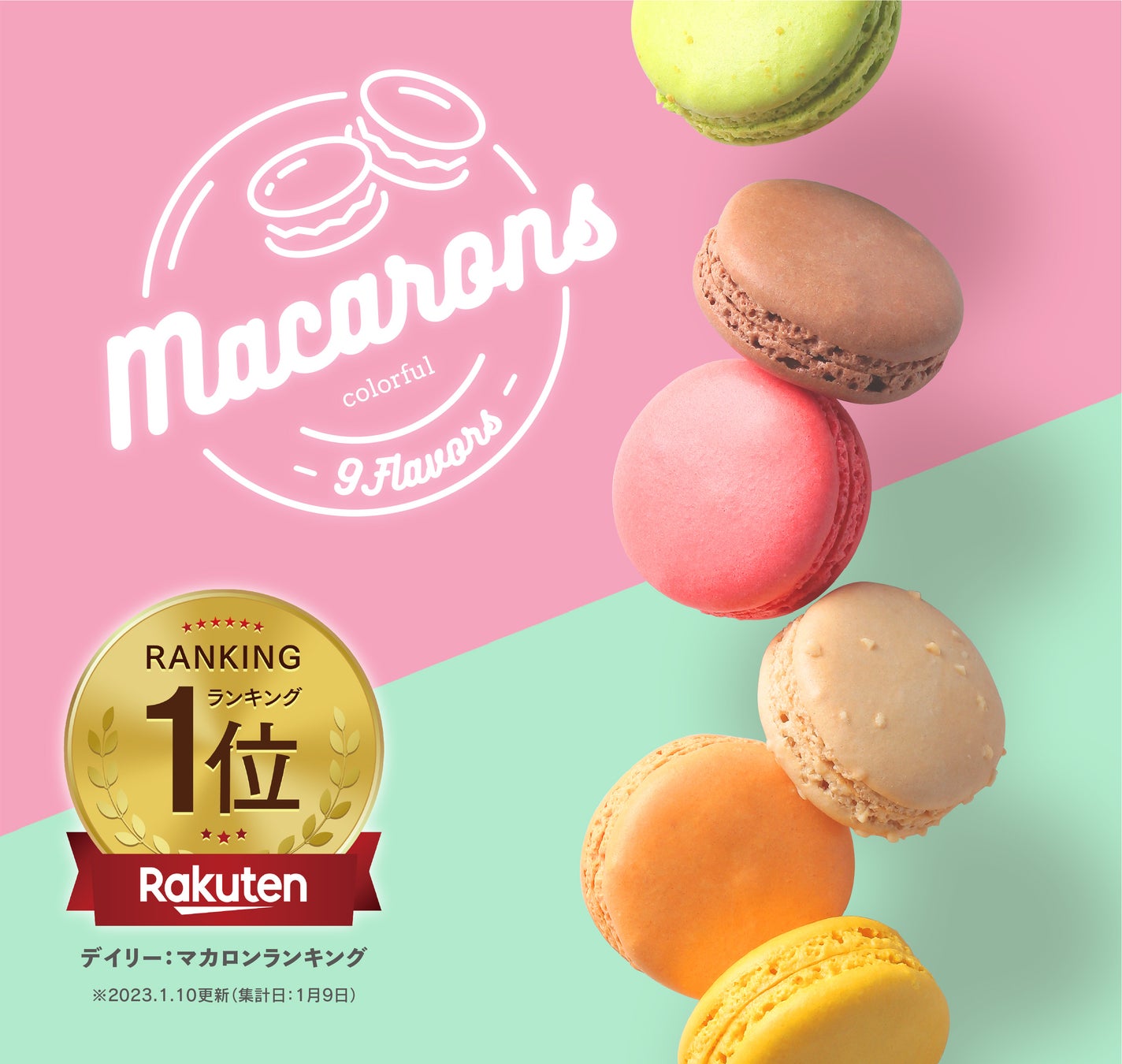 マカロンの生地に粗めにひいたアーモンドを使用し、アーモンドの風味が口のなかに広がります。9種類の素材の味わいを活かし、さっくり、しっとりの食感を追求しました。見た目にも鮮やかで、お店の棚が華やぎます。