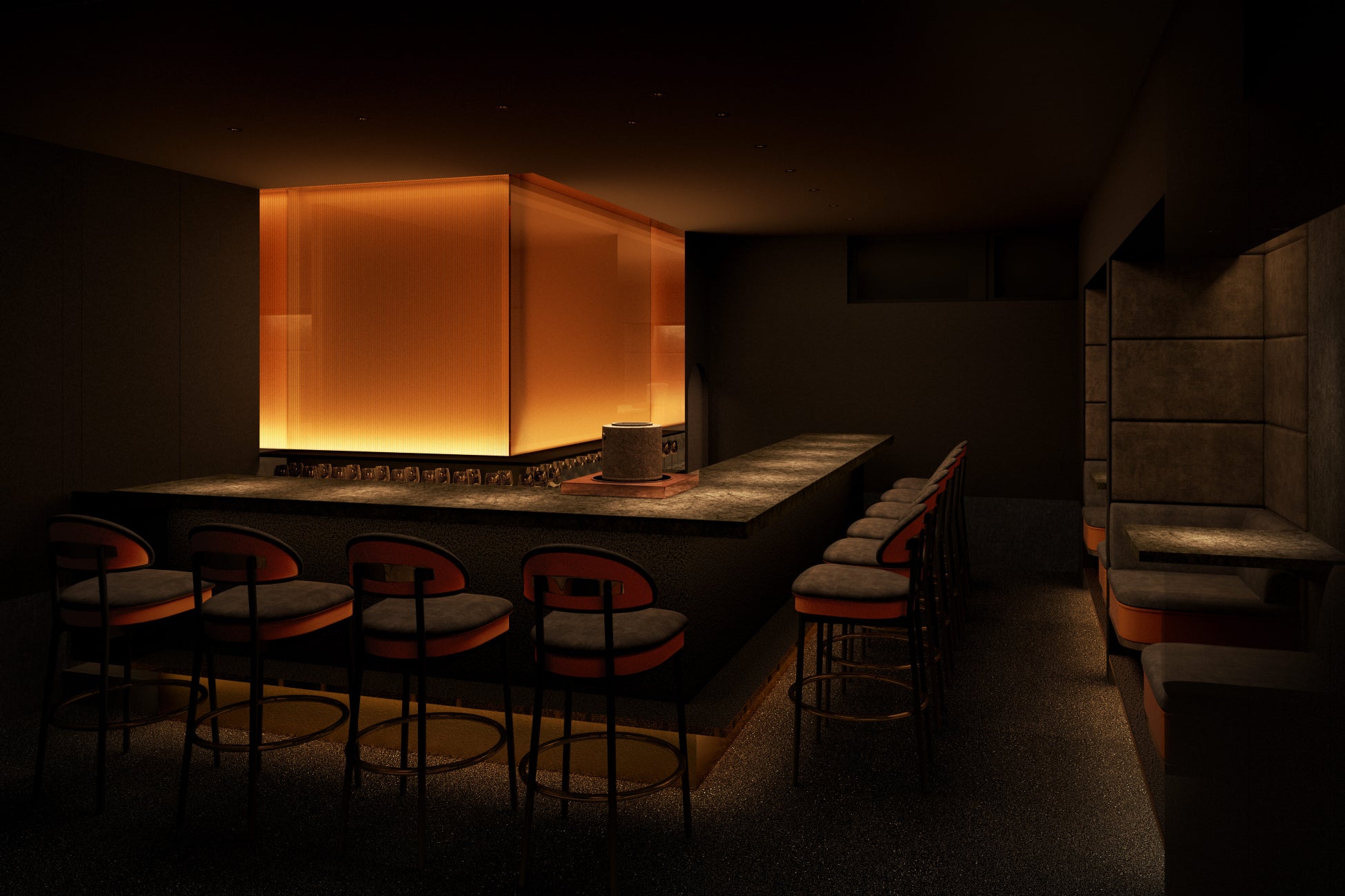福岡今泉の賑やかな街並みから一本裏手に入った商業ビル内に位置する、「Remake easy 博多天神」は、露地のようなアプローチを抜けると、障子を模したブロンズの光壁がゲストを迎え、和紙貼りのカウンターではRemake easyのパフェが作り上げられる様子が間近に見られます。