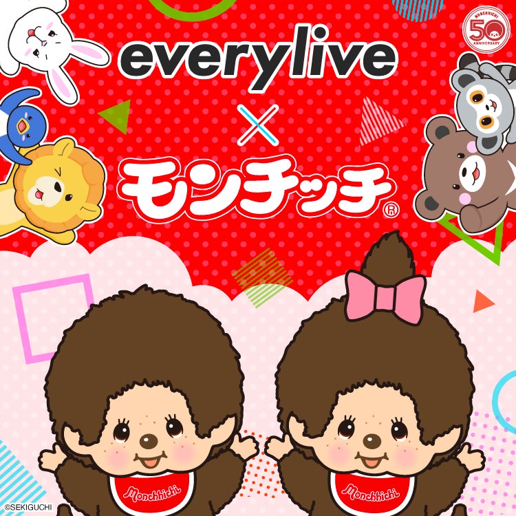 ライブ配信アプリ「everylive(エブリライブ)」大人気キャラクター「モンチッチ」の誕生50周年記念コラボレーションイベントを開催
