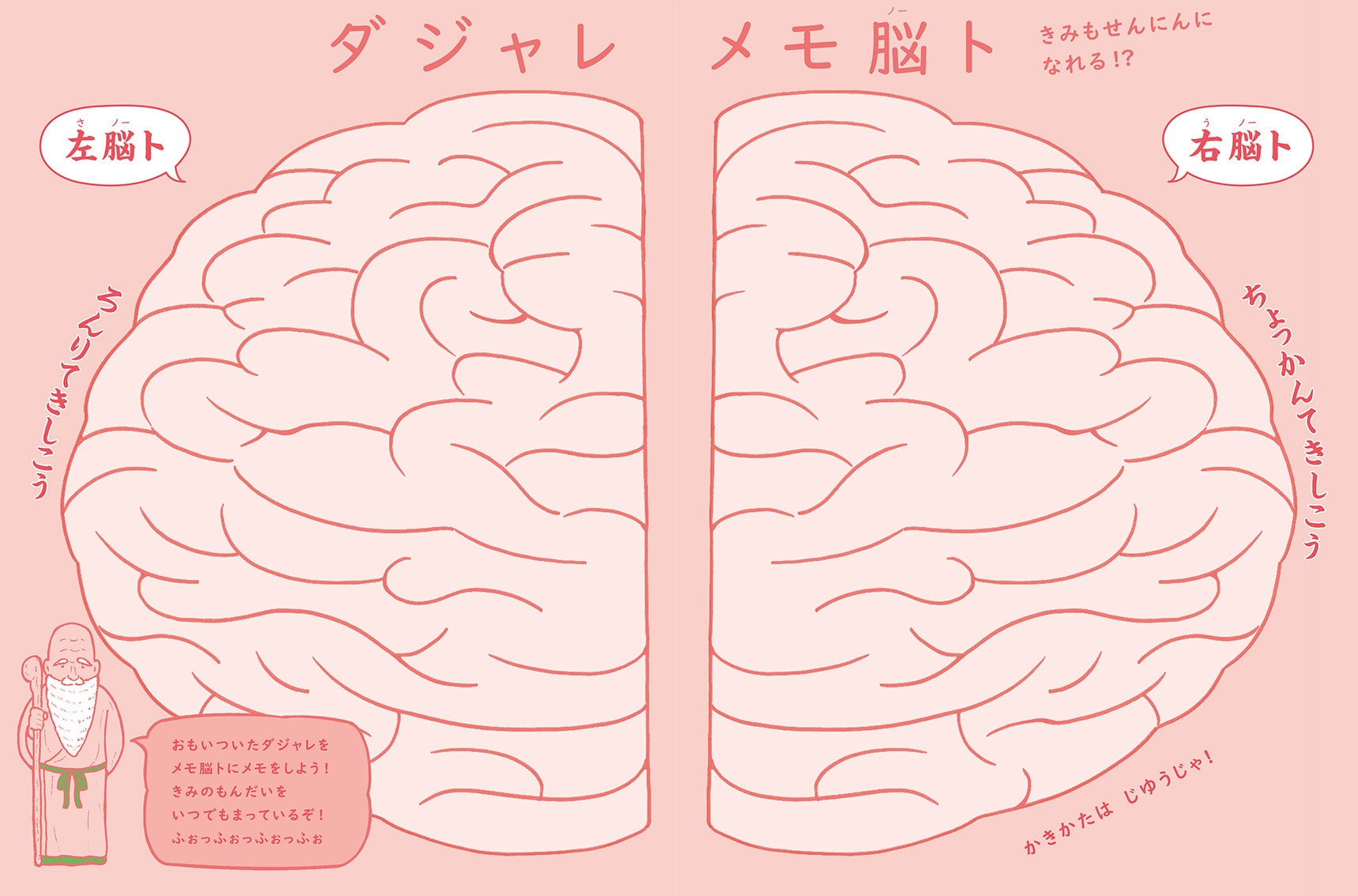 読んだあとは思いついたダジャレをメモできるテンプレート「ダジャレメモ脳(ノー)ト」(コピーして使用)ページも。読むだけでなく、自分でアイデアを考える楽しさも味わえる一冊。