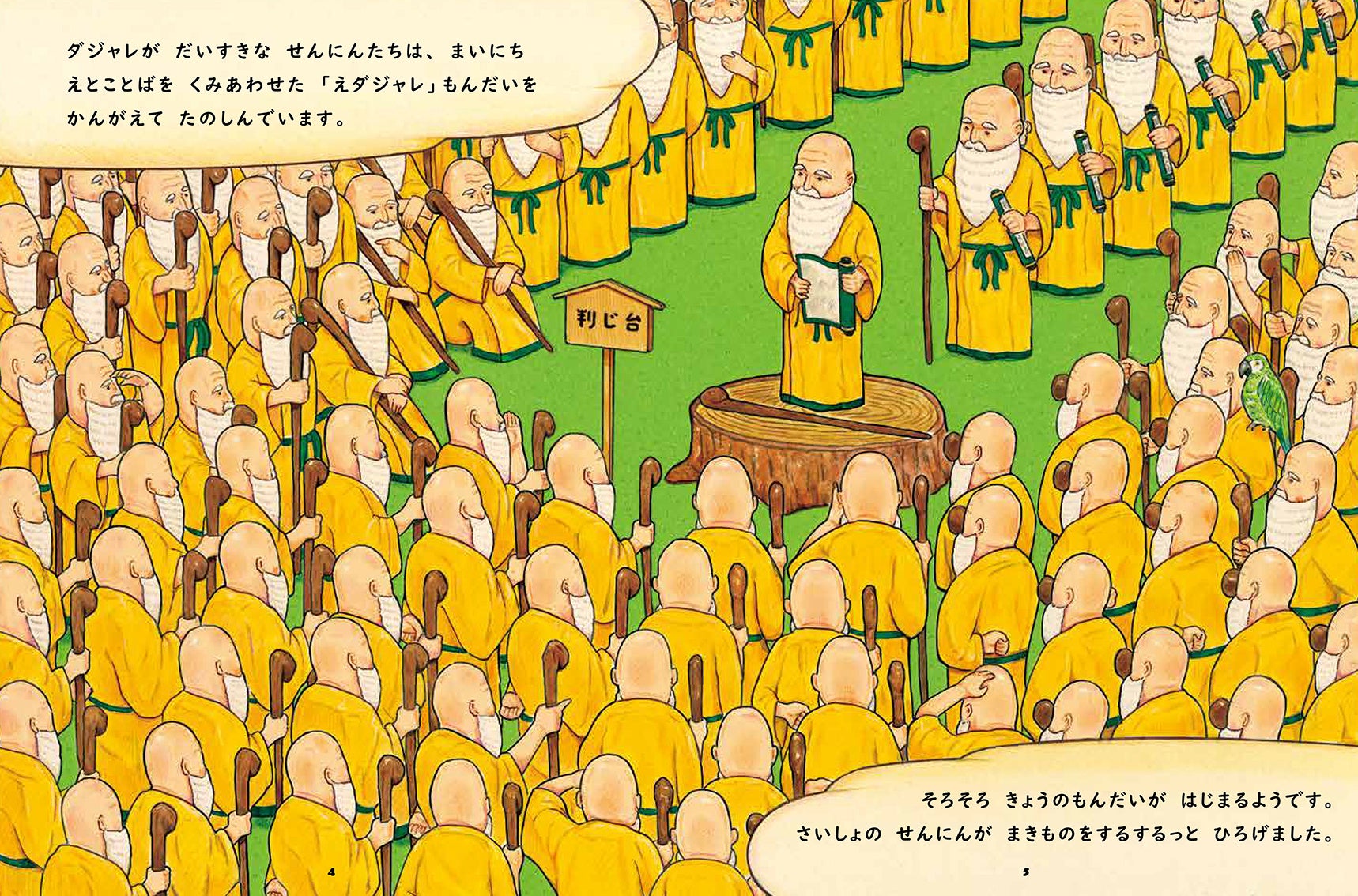 絵+ことばを組み合わせて考える「絵ダジャレ」がおもしろい!新感覚のことば遊び絵本『せんにんのせんにん』が発売。1000人の仙人たちが繰り広げる「絵ダジャレ問題」に挑戦!