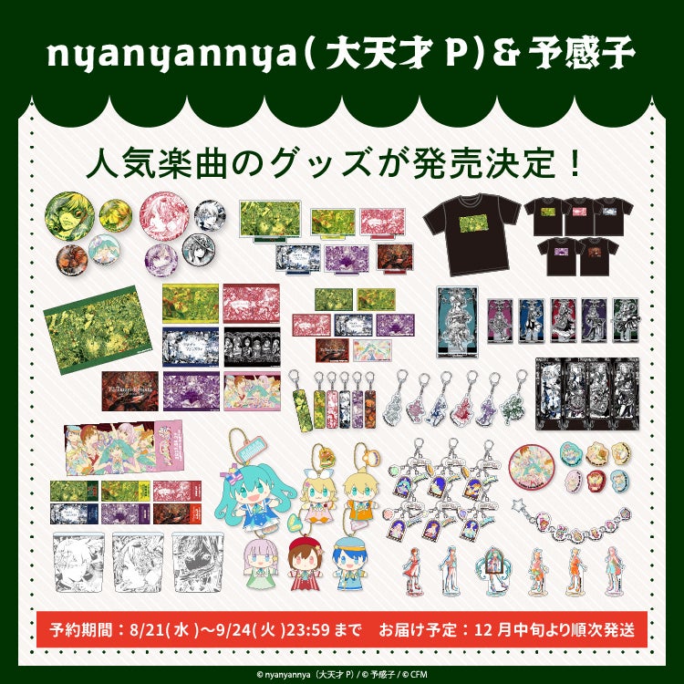 nyanyannya(大天才P)さんが制作、予感子さんがイラストを手掛けた人気楽曲7曲のグッズが一気に登場!!
