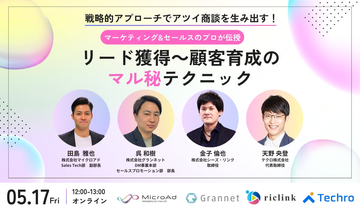 【5/17開催ウェビナー】戦略的アプローチでアツイ商談を生み出す!マーケティング&セールスのプロが伝授「リード獲得~顧客育成のマル秘テクニック」