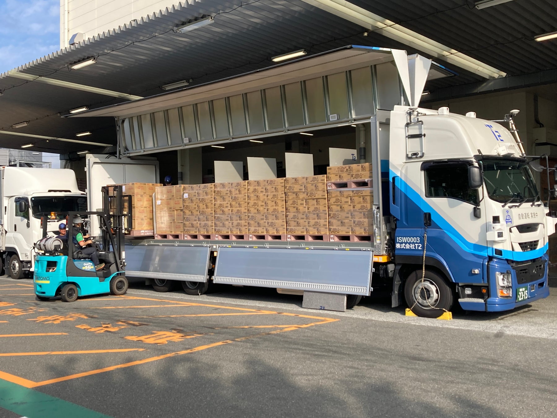 T2では、本年7月、自動運転トラックによる幹線輸送を国内で初めて事業化し、佐川急便株式会社、西濃運輸株式会社、日本郵便株式会社、福山通運株式会社および三井倉庫ロジスティクス株式会社の5社をユーザーに、まずはレベル2自動運転トラックによる商用運行を始めました。