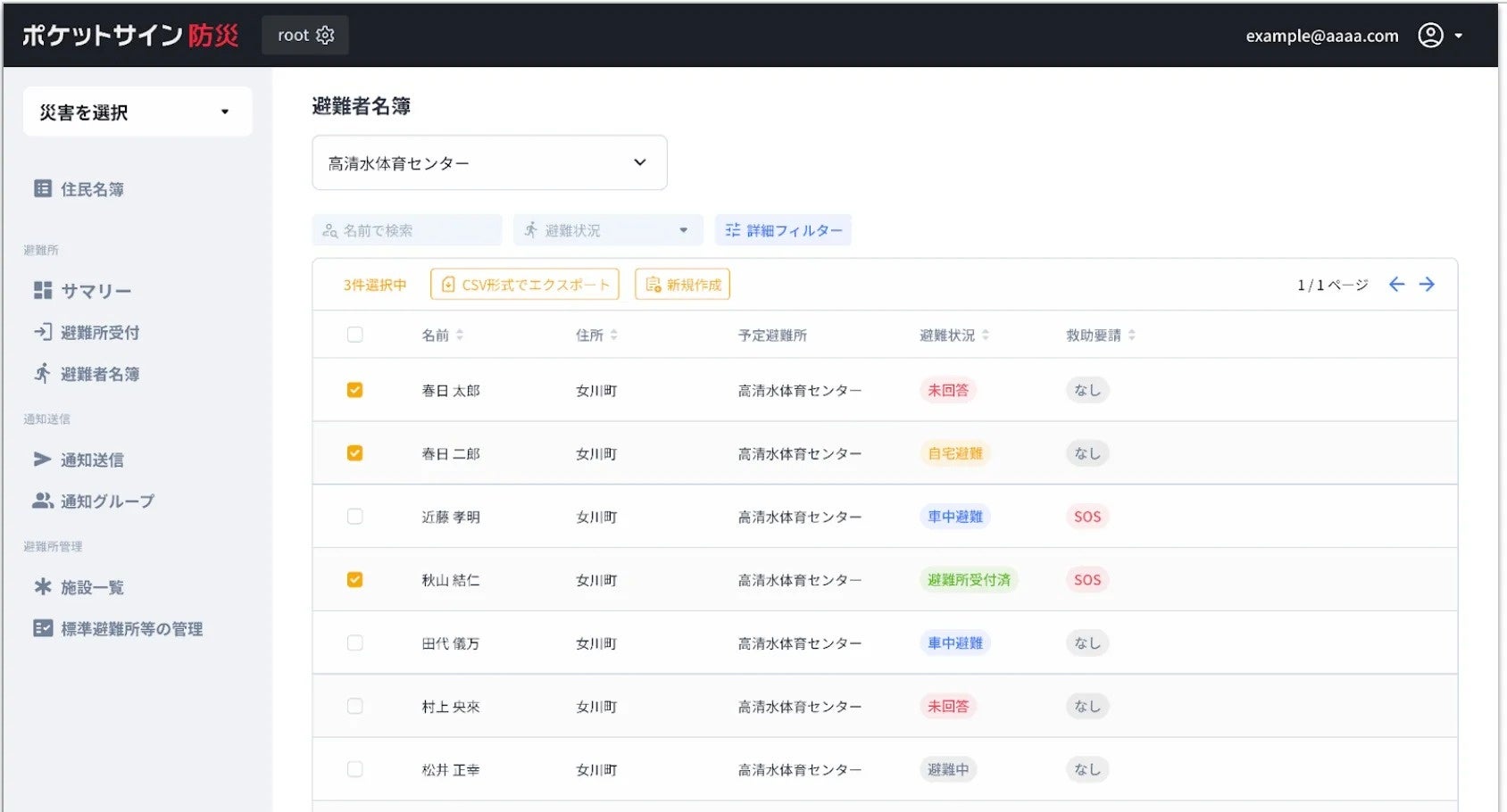 また、各避難所の管理を担当する職員も、通常は電話で避難者数などの避難所情報を収集し、ホワイトボードで管理していたが、本サービスによって負担が軽減されると感じた。