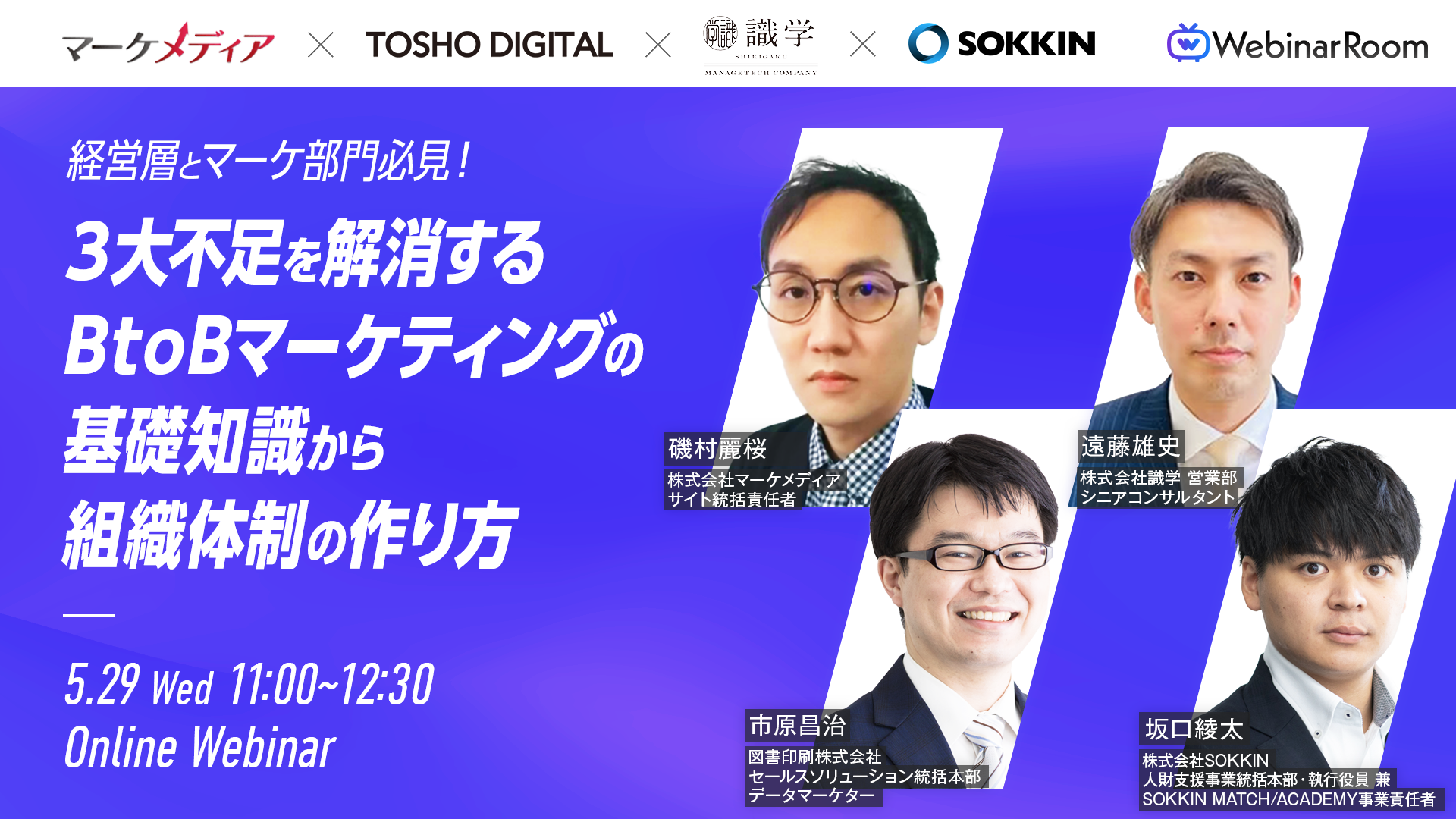 【5月29日(水)開催】「3大不足を解消するBtoBマーケティングの基礎知識から組織体制の作り方」無料オンラインウェビナーに登壇決定!