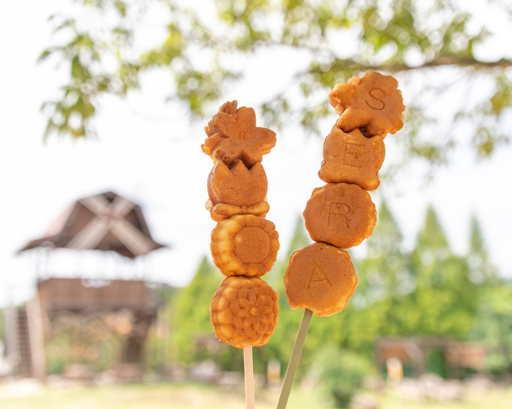 世羅産卵の風味がふわっとかおる「農場焼き」は、お花の形をしたカステラのようなスイーツです。期間限定で世羅高原農場の栗とマロンソースが入っています。