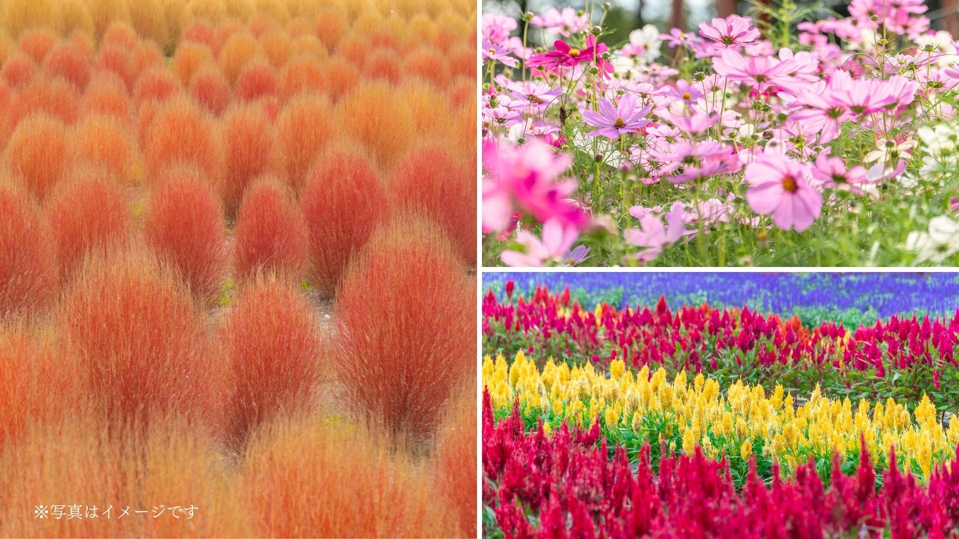 Flower village 花夢の里では、9月21日から「コキアとコスモスの丘」が開園します。