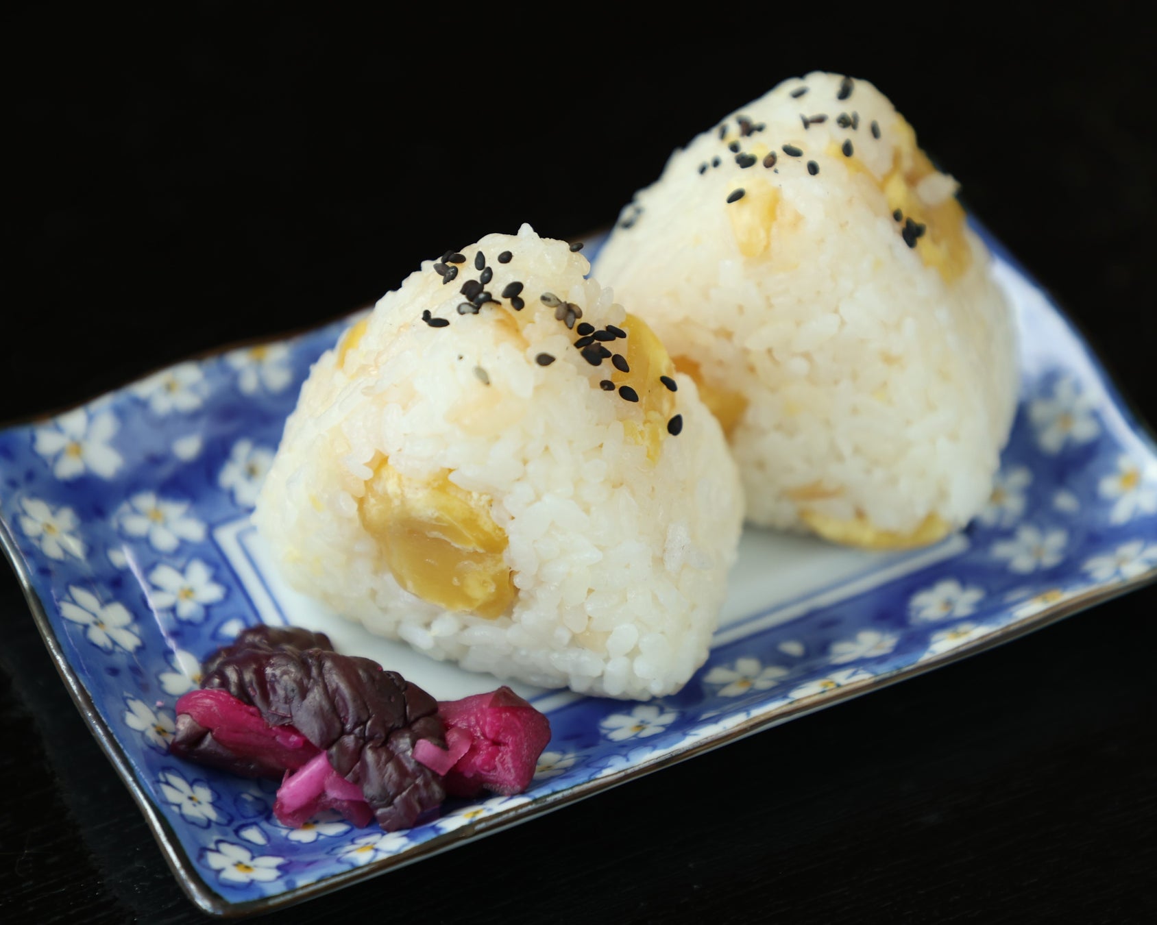 世羅産コシヒカリを炊いた栗ご飯のおにぎりです。