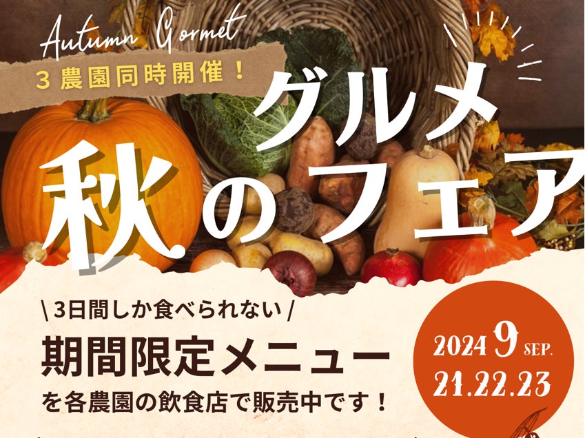 世羅高原農場グループ3農園「世羅高原農場」「世羅高原花の森」「Flower village 花夢の里」で、秋のグルメフェアを同時開催します。世羅産食材または秋らしい食材を使った秋の味覚です。秋の花めぐりと一緒にグルメめぐりをお楽しみください。