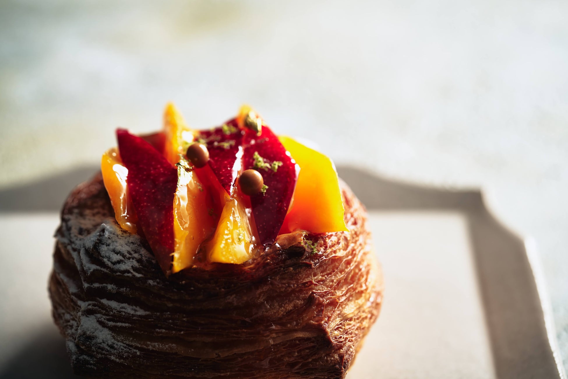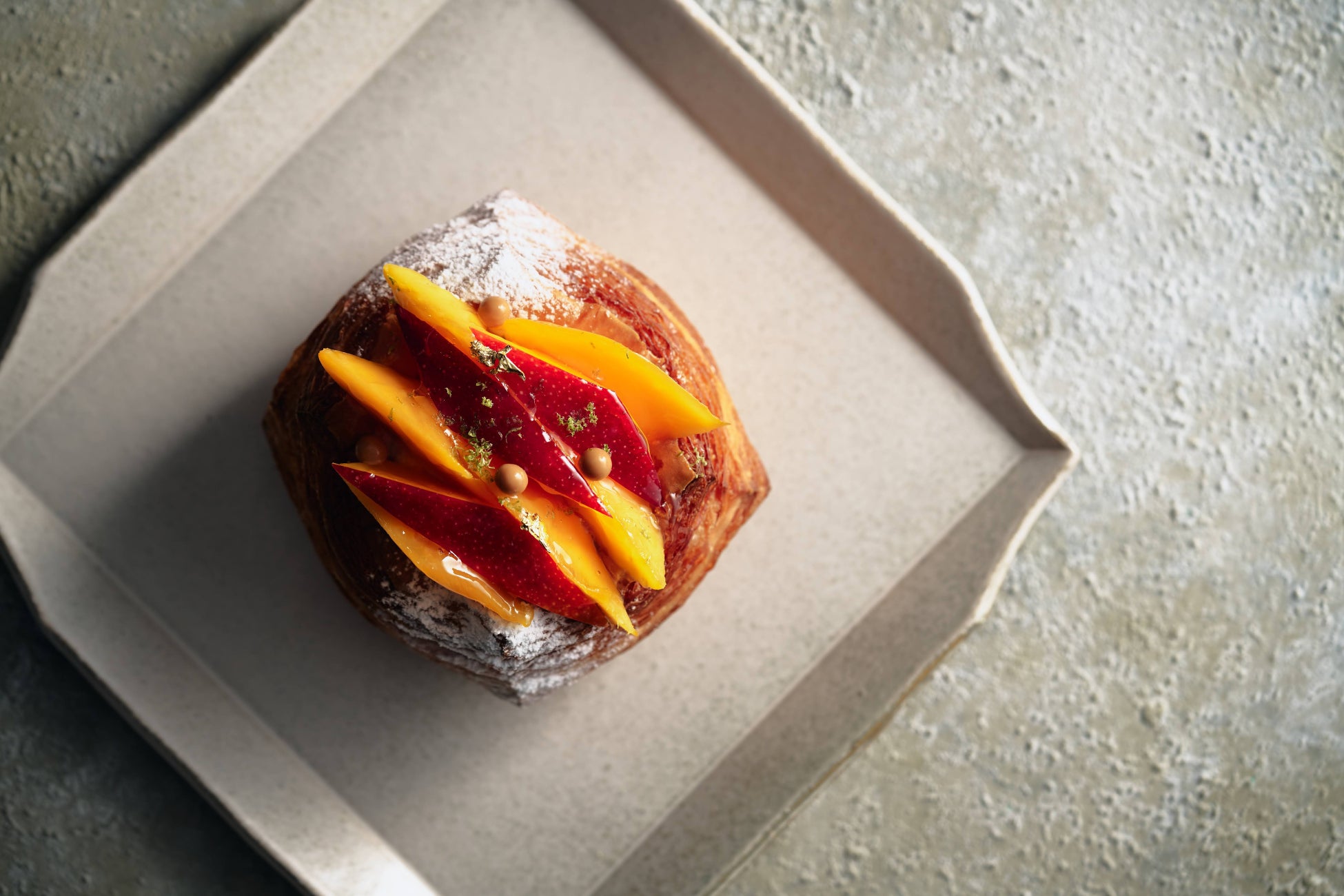 香り高く強い甘さが特徴のみずみずしい宮崎マンゴーを贅沢に乗せた季節のデニッシュ。