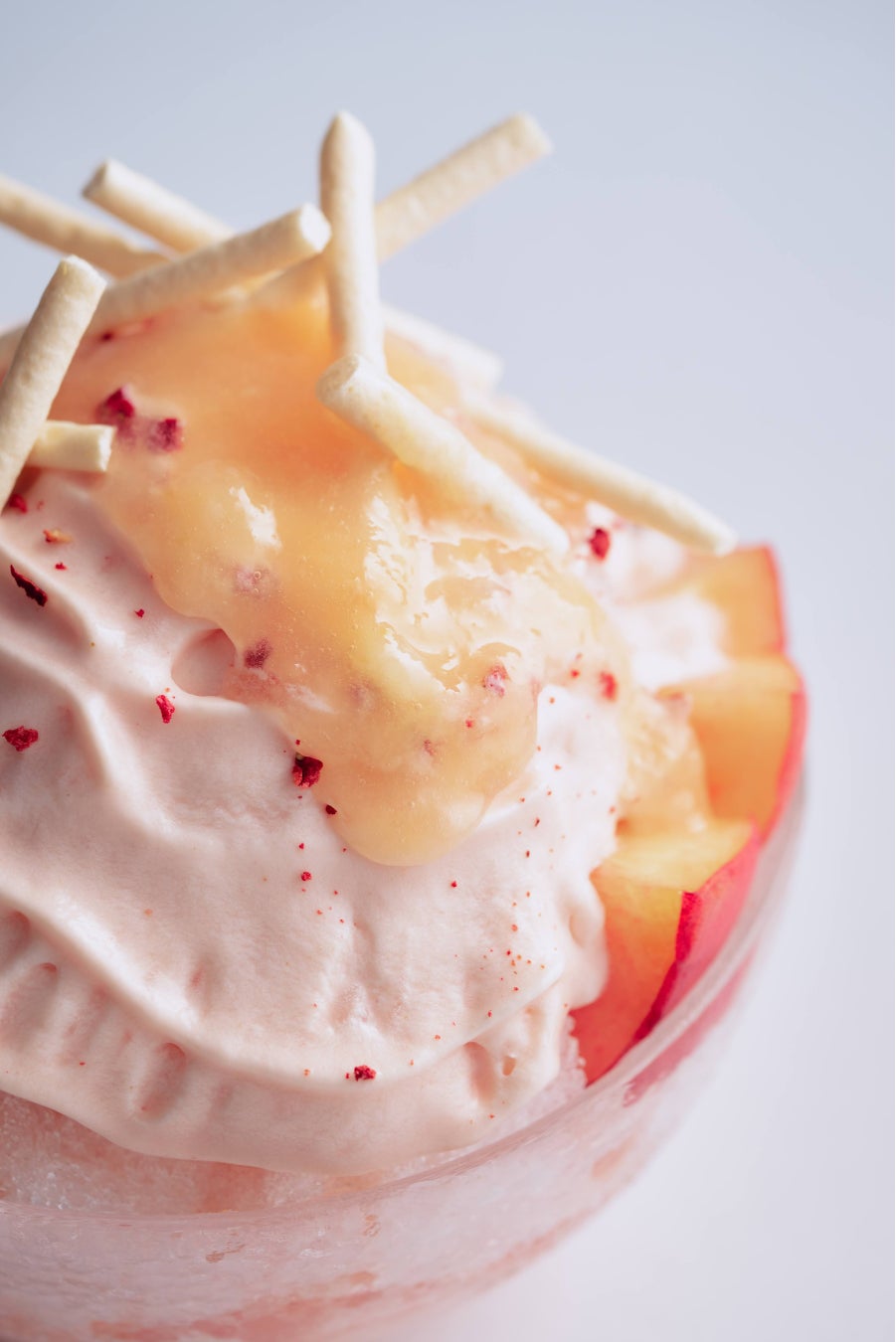 ヨーグルトの酸味が桃の旨みを引き出したかき氷