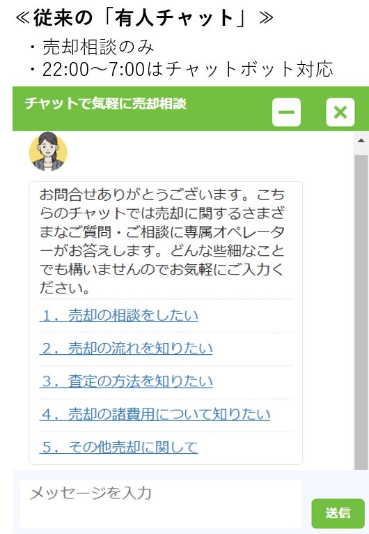 当社では従来より、ホームページ上の、売却相談関連ページにおいて「有人チャット」による対応を行ってまいりましたが、夜間など人員を配置できない時間帯はチャットボットによる対応に切り替える必要があり、また不動産のご購入相談を含めた様々な不動産に関するニーズをお持ちの多くの訪問者様(月平均914万ページビュー/2023年度実績)一人一人に、最適な顧客体験を提供できていないという課題がございました。