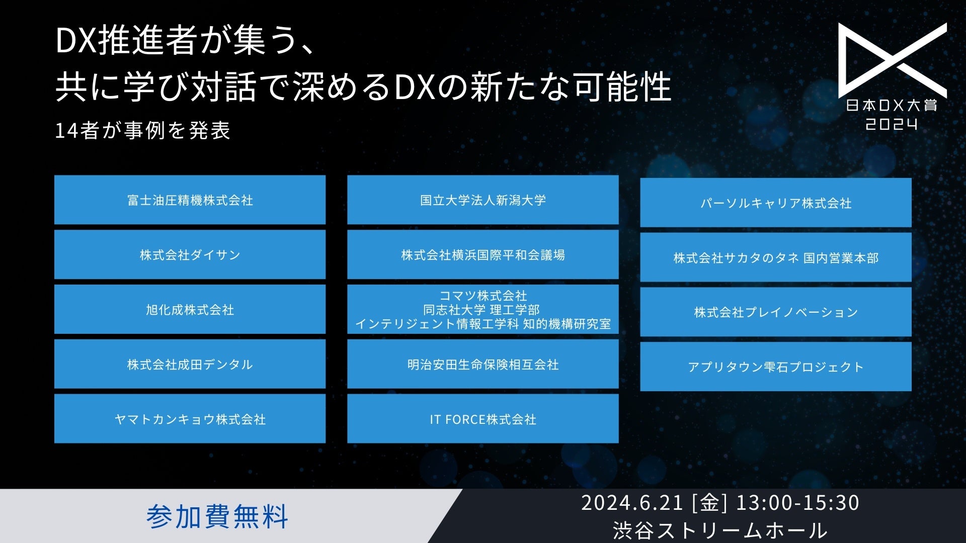 参加対象: DX推進に関心のある企業・団体の実務担当者、経営者など