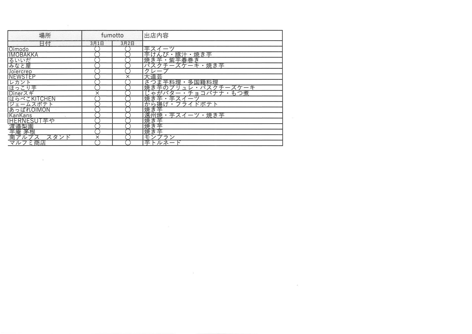 2025年3月1日2日 第2回芋フェス!IN fumotto 山梨 出店者決定