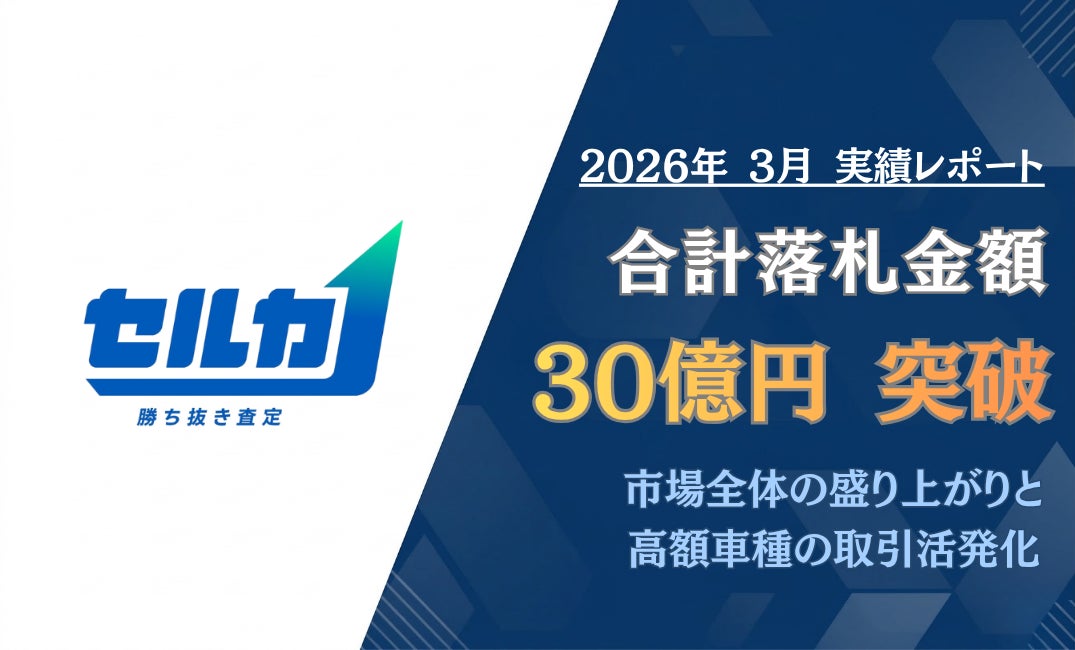 クイック・ネットワーク株式会社(本社:兵庫県神戸市、代表取締役社長:田畑 翔利)が運営する、中古車CtoBオークションサービス 勝ち抜き査定「セルカ」において、2026年3月の平均落札価格は2,211,658円となりました。また落札金額合計が月間で30億円を突破し、市場の盛り上がりを示す結果となりました。