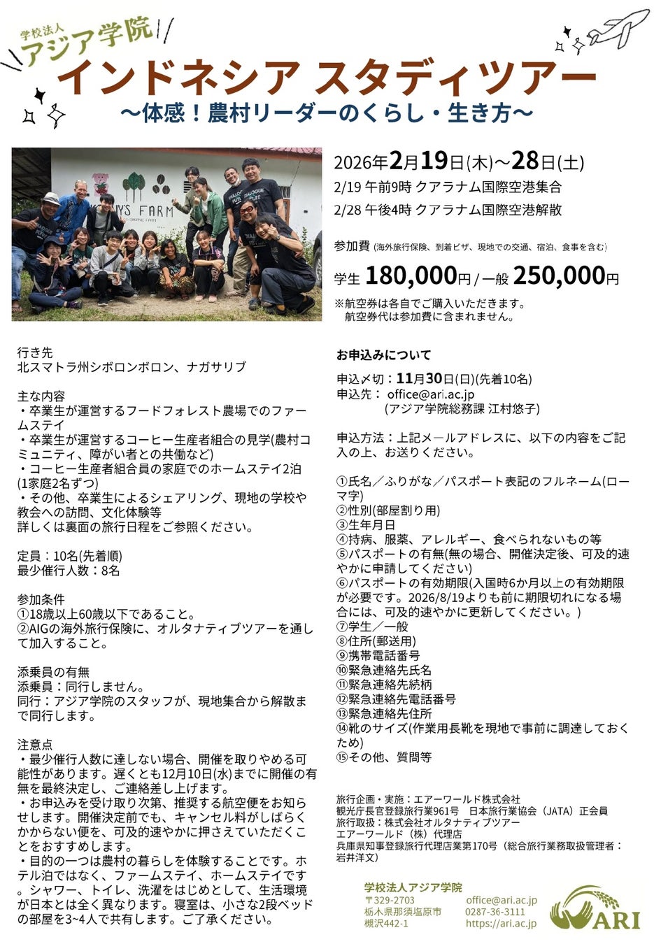 アジア学院インドネシアスタディツアー2026~体感!農村リーダーのくらし・生き方~