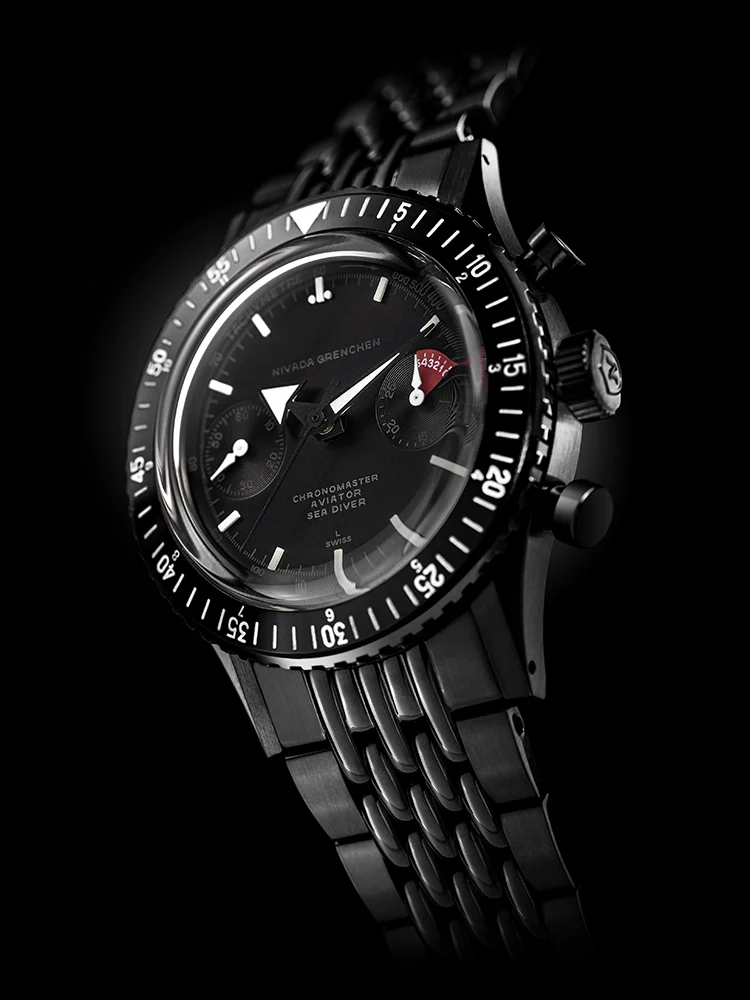 株式会社ビヨンクール(本社:東京都渋谷区、代表取締役社長:荒井雄志)が運営するファッションウォッチセレクトショップ「H°M’S” WatchStore(エイチエムエスウォッチストア)」にて、スイスの老舗ブランド「Nivada Grenchen(ニバダ・グレンヒェン)」の新作「Chronomaster Aviator Sea Diver Full Black(クロノマスターアビエーターシーダイバーフルブラック)」と「ANTARCTIC DIVER GREEN(アンタークティックダイバーグリーン)」の2モデルを発売します。