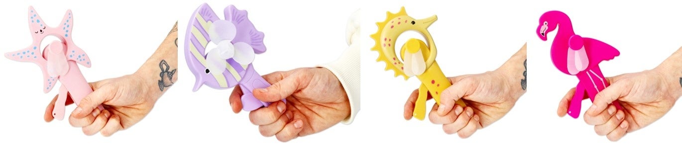 手回しファン 各385円(ヒトデ、魚、タツノオトシゴ、フラミンゴ)