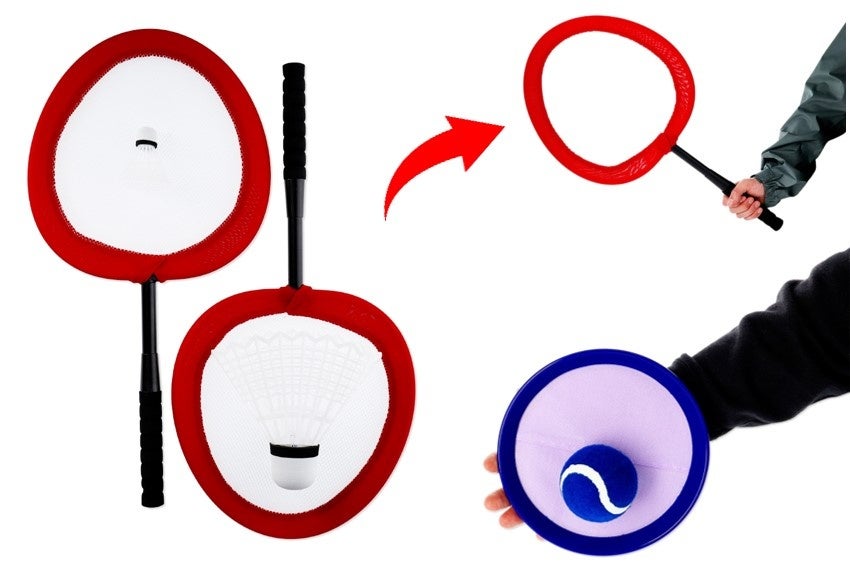 バドミントンは、30.5cm×64cmの巨大ラケット!シャトルはなんと通常の約3倍!ボールがくっつくキャッチボールも、みんなで簡単に遊べるのがうれしい♪