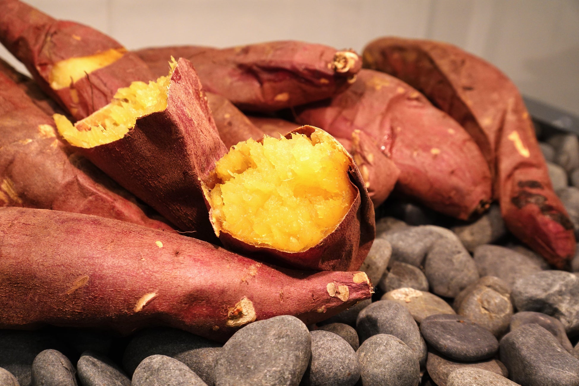 ー明治時代から続く伝統の製法で作られた焼き芋は「紅はるか」を使用。しっとりほくほくとした食感と、しっかりとした甘さが特徴です。