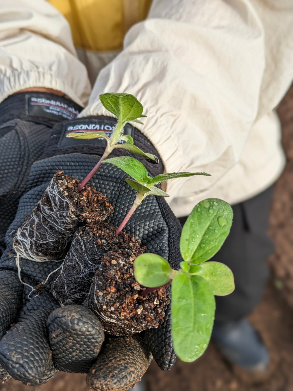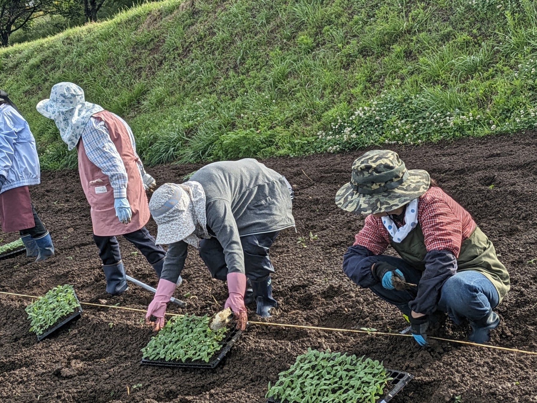 ▶活動内容 ひまわりの定植作業、花がら摘み、その他簡単な圃場管理