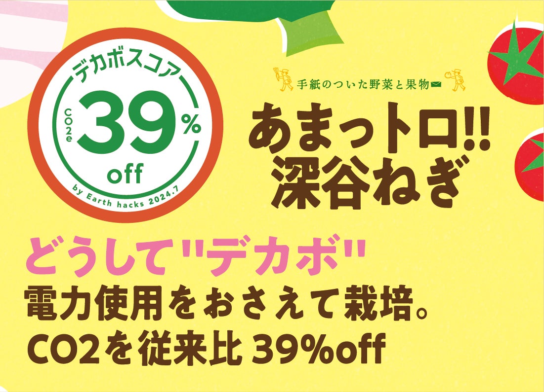 東急ストアオリジナル「手紙のついた野菜と果物」など、青果・畜産・水産の商品をデカボスコアで環境への貢献度をわかりやすく可視化