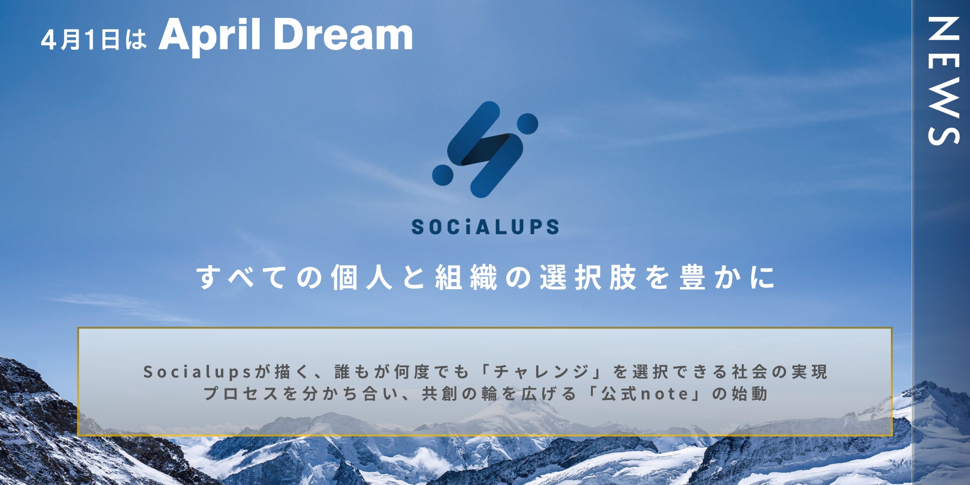当社は、4月1日を夢を発信する日にしようとするApril Dreamに賛同しています。このプレスリリースは「Socialups株式会社」の夢です。