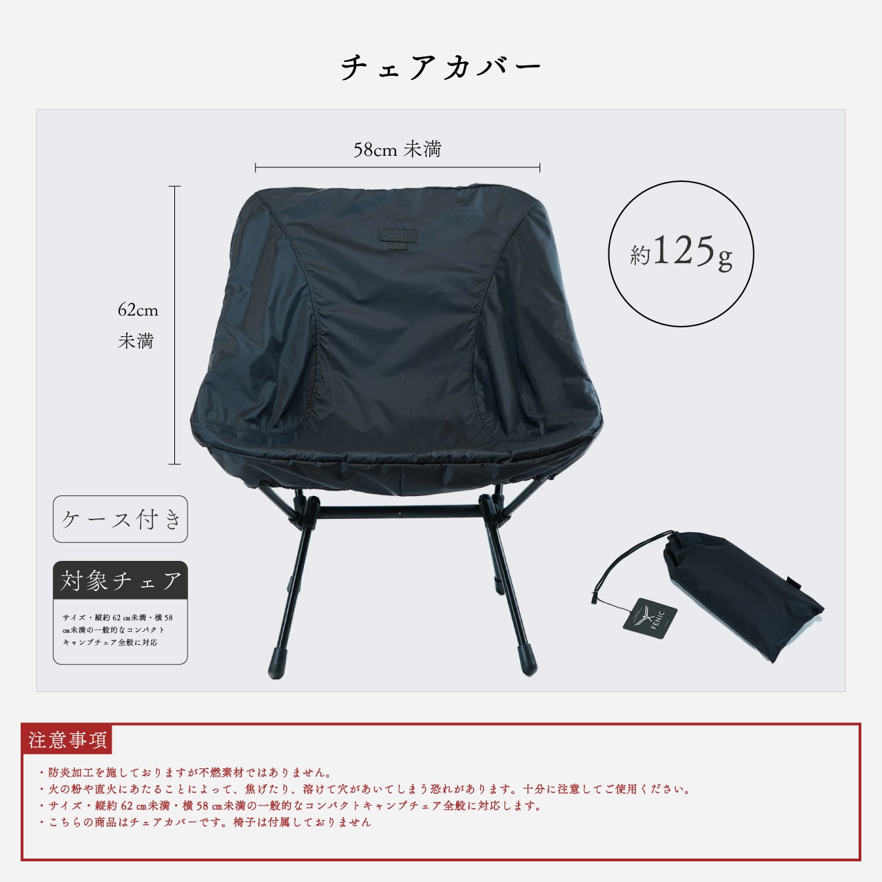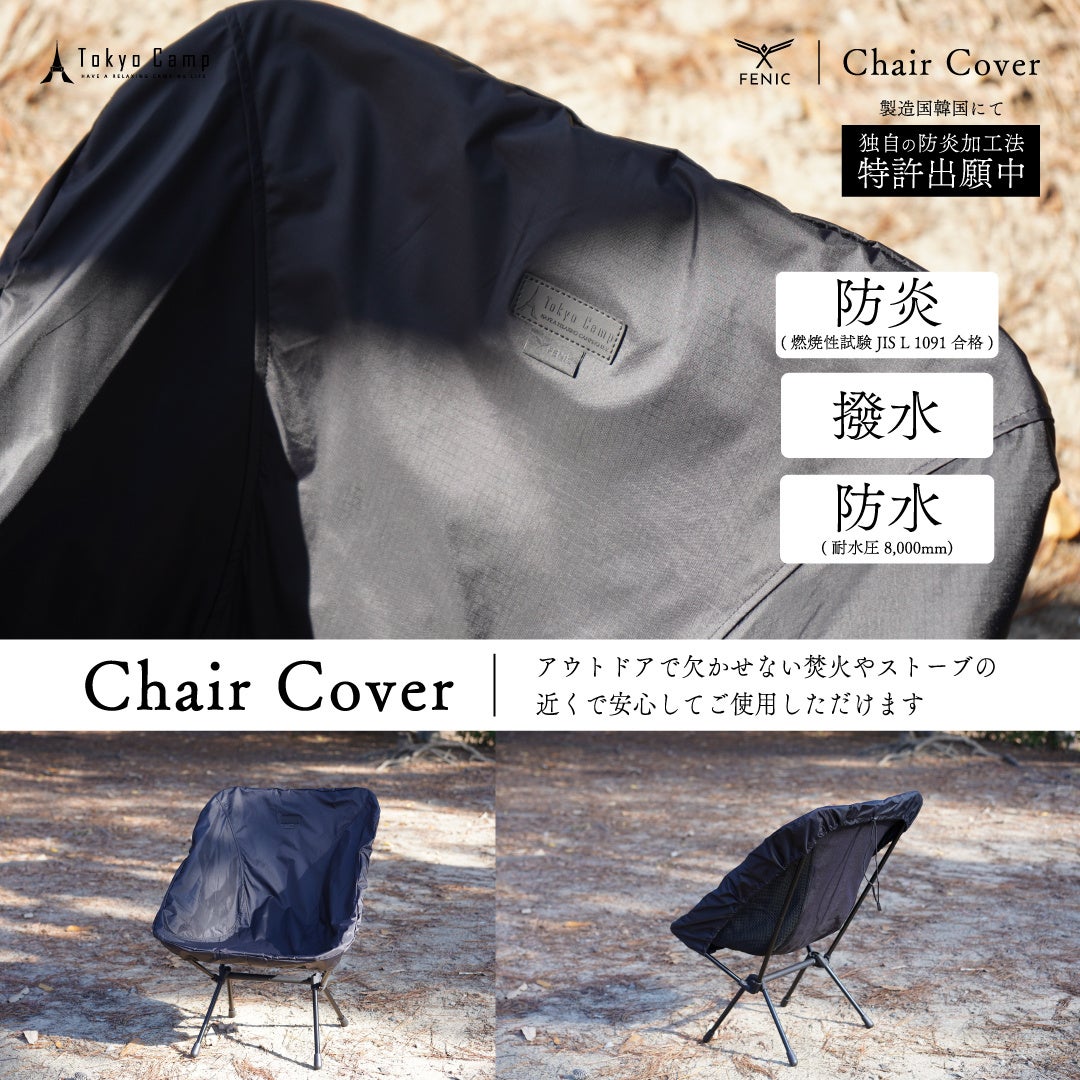 独自開発の防炎生地FENICを採用した高性能チェアカバー。防炎性・撥水性・防水性を併せ持ち、大切な椅子を火の粉や突然の雨、汚れから守ります。