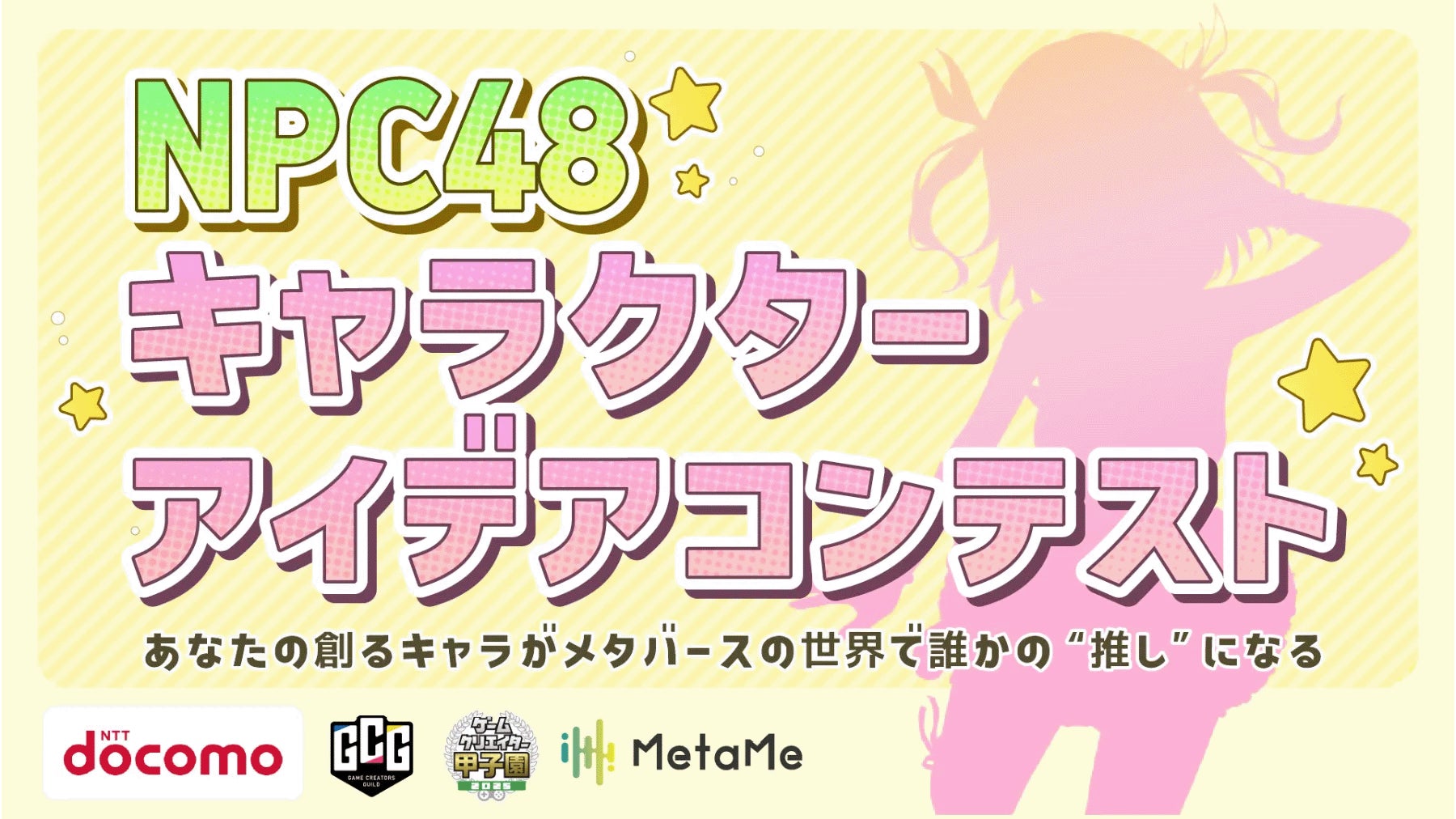 クリエイターの生涯活躍を支援する株式会社ゲームクリエイターズギルド(本社:東京都豊島区、代表:宮田大介、以下「ゲームクリエイターズギルド」)は、NTTドコモが開発する独自技術を活用したメタコミュニケーションサービス「MetaMe®️(メタミー)」において、「NPC48 キャラクターアイデアコンテスト」を開催します。
