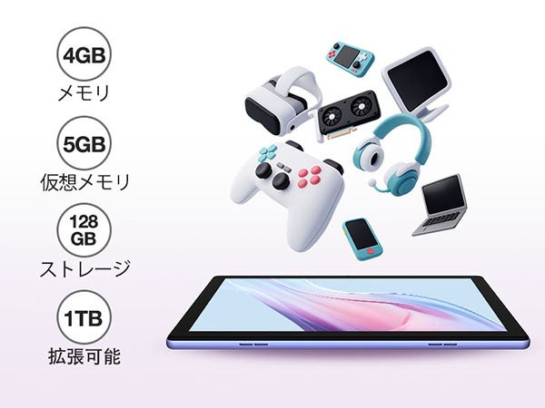 4GBのメモリ+5GBの拡張可能な仮想メモリ、合計9GBの融合メモリを搭載しています。これにより、タブレットは複数のアプリケーションを簡単かつスムーズに切り替えることができ、ラグをなくし、高速でスムーズな操作体験を提供します。128GBの大容量ストレージも搭載されているため、メモリ不足を心配する必要はもうありません。 大容量の1TBまでのmicroSDカードでストレージ容量をさらに拡張できます。(FAT32、exFATフォーマットカードは別売り)