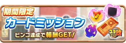 タテヨコ5x5マス=25種のミッションをクリアしてビンゴを完成させると、イベント限定モンスター「ジャングラー」や今月のWantedモンスター「モノリス」の「モンスターハート」や「ナゲセン」、「ダイヤ」、「スタフェス(秋)ガチャチケット」など、豪華報酬がもらえます。1回の育成プレイで同時に複数マスのミッション達成も狙えますので効率よくプレイして、期間内にビンゴを完成させましょう。