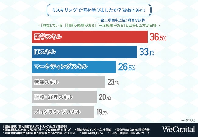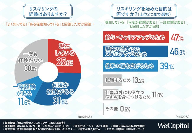 『ヤマワケ』(https://yamawake.jp/)の運営会社であるWeCapital株式会社(本社所在地:東京都港区、代表取締役:齋藤 洋佑/橋口 遼)は、個人投資家を対象に、「個人投資家とリスキリング」に関する調査を実施しました。