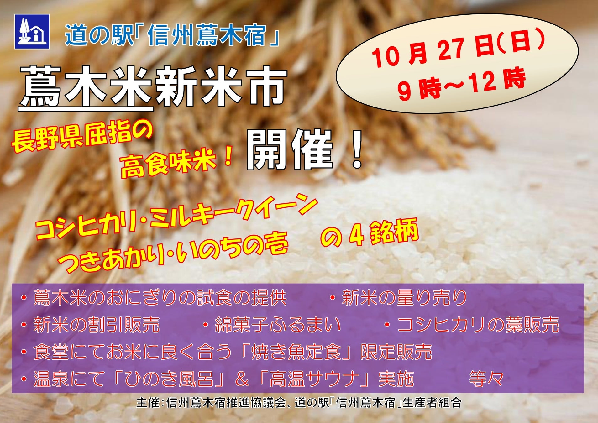 長野県富士見町の道の駅「信州蔦木宿」にて、蔦木米新米市を開催します。