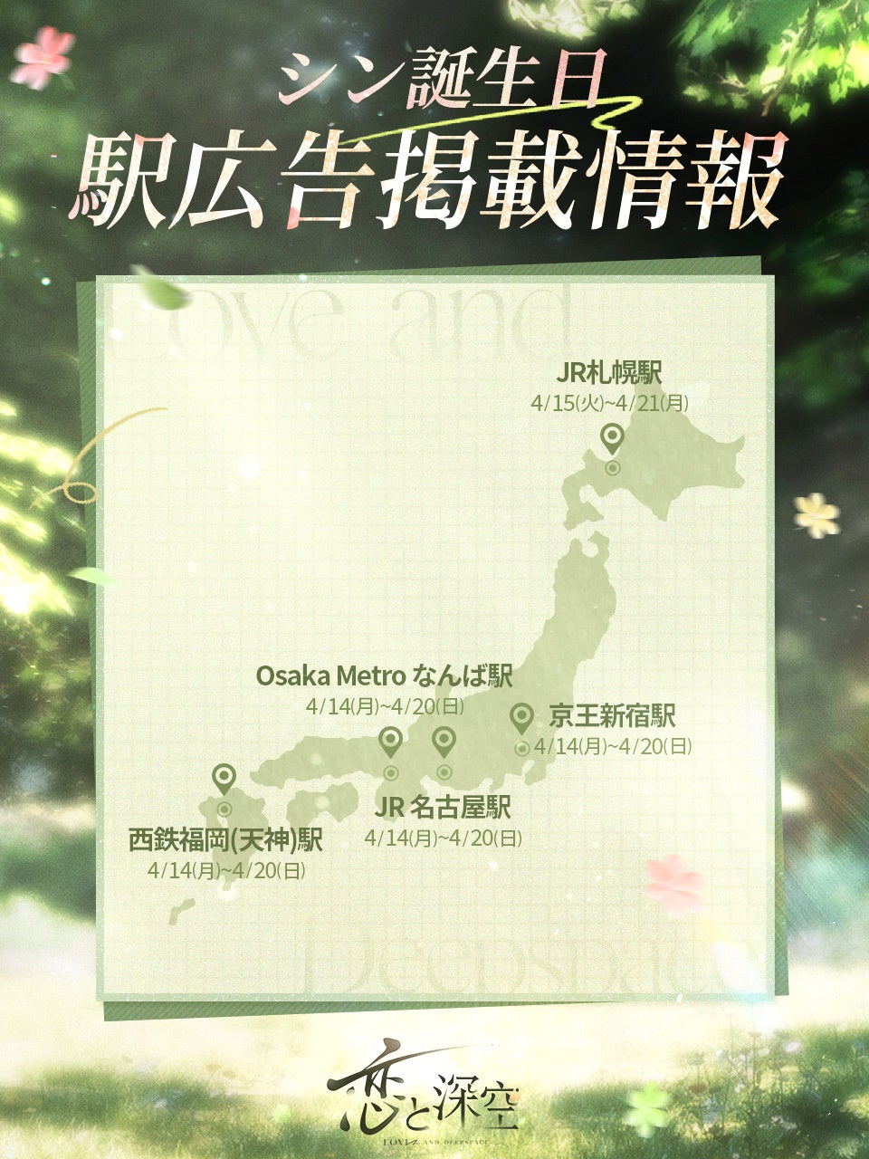 ゲーム内イベントに加え、シンのお誕生日をお祝いして、東京・大阪・福岡・名古屋・北海道にてポスター広告を掲出致します。