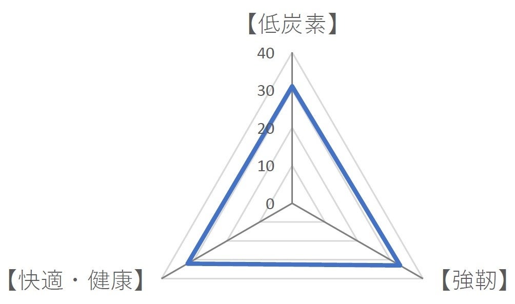 本物件は、エネルギーの効率的運用や、リサイクル材の採用による省資源化、建物の耐用性・信頼性等のサービス性能などの項目で高い評価となり、Aランクを達成しています