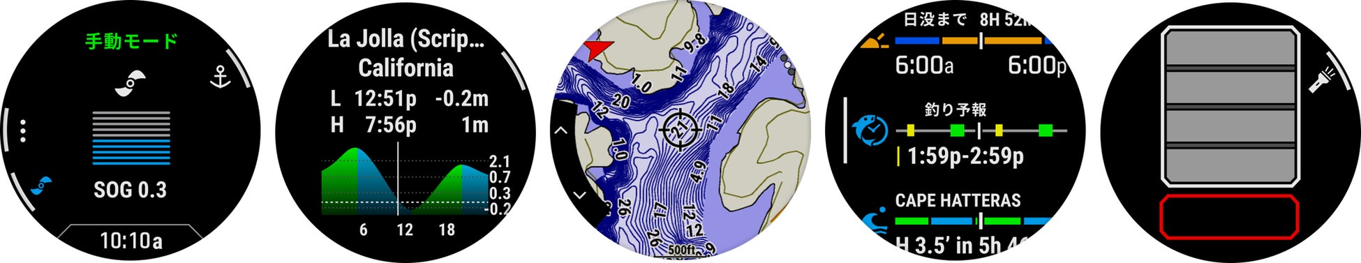 さらに、日本詳細地形図(DKGマップ)や世界2,000以上のスキーマップおよび43,000以上のゴルフコースも搭載。また、Garmin Cartographyのチャート地図にも対応しています。