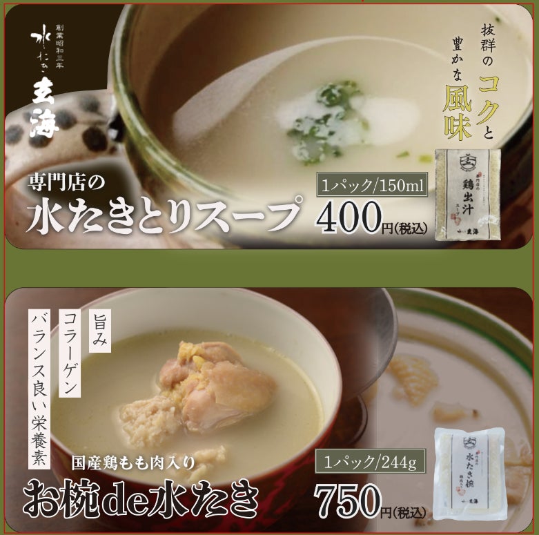 販売商品:『水たきとりスープ』『お椀de水たき』