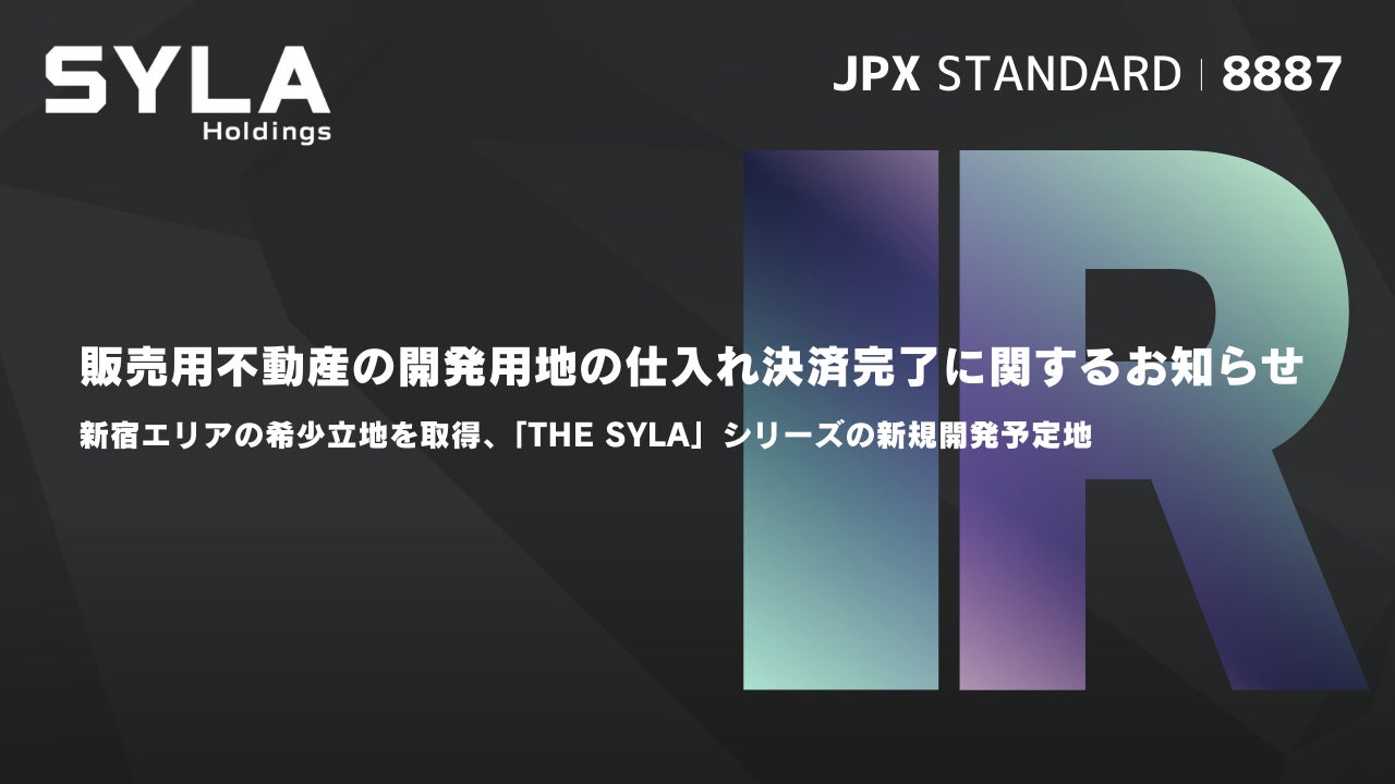 株式会社シーラホールディングス(本社:東京都渋谷区、代表取締役会長CEO:杉本 宏之、証券コード:8887、以下「当社」)の連結子会社である株式会社シーラは、本日、下記のとおり販売用不動産の開発用地の仕入れ決済を完了しましたので、お知らせいたします。