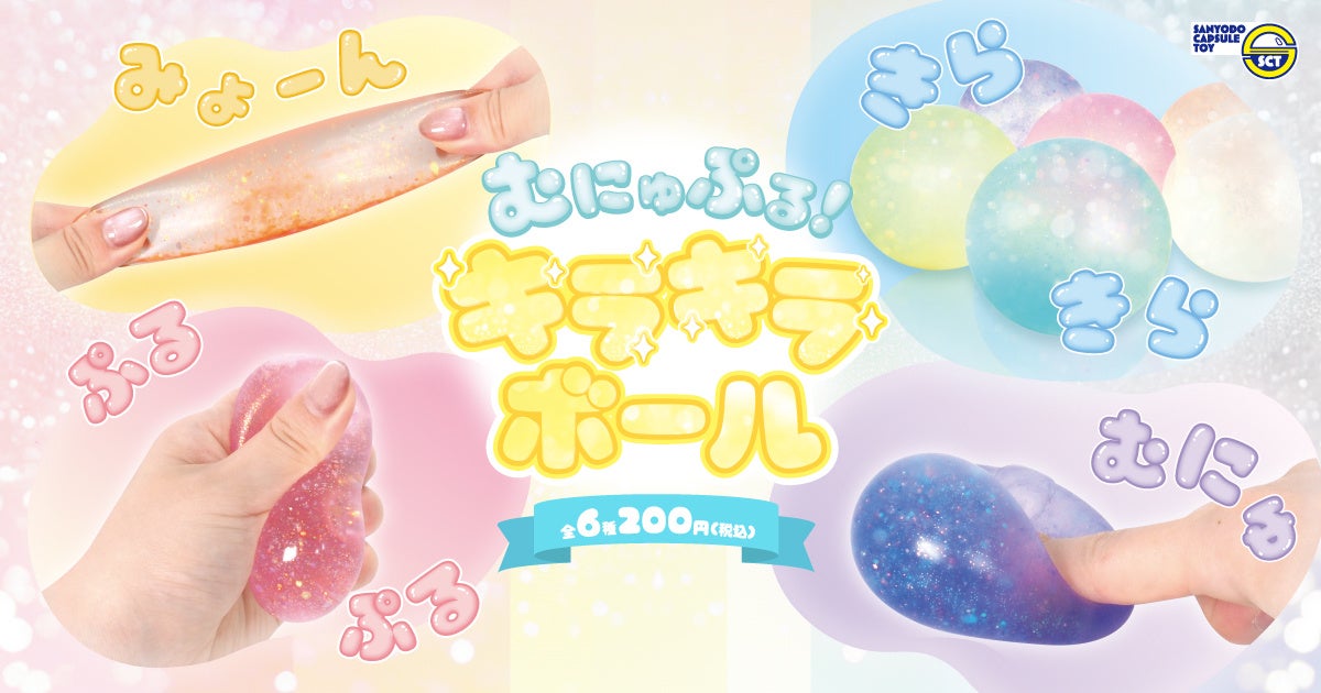 縁日商材をはじめとする玩具等の製造販売を行う株式会社三洋堂(本社:愛知県岩倉市、代表取締役:折小野 嘉輝)は、カプセルトイの新商品『むにゅぷる!キラキラボール』全6種を、2025年10月14日(火)より全国のカプセルトイ自動販売機で1回200円(税込)にて順次発売を開始いたします。