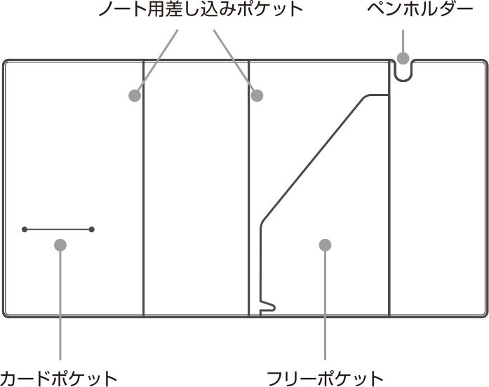 仕様:マグネットフラップ、ノートポケット、カードポケット、フリーポケット、ペンホルダー