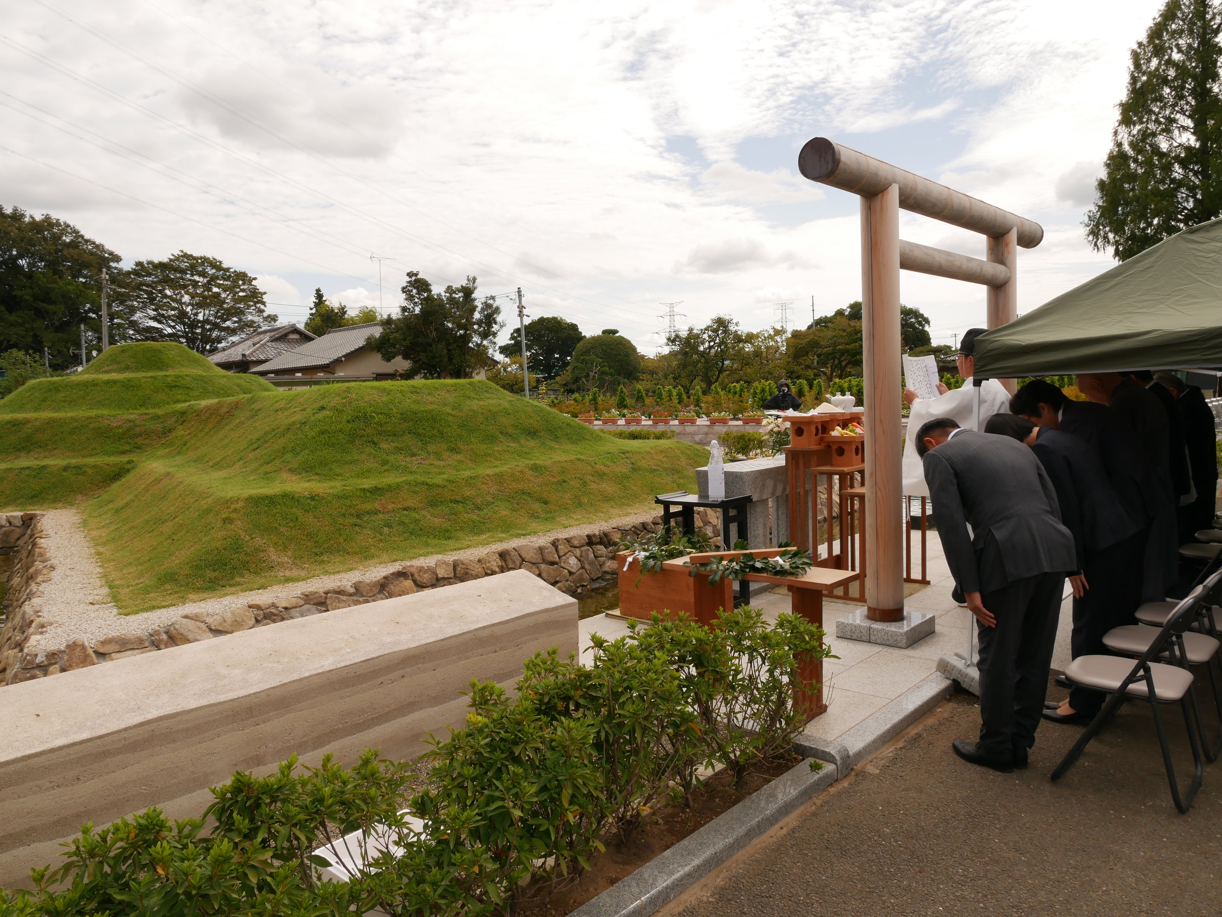 当社では、「古墳墓」という本来神道的な性格を持つ墓所において、神職による祭祀と住職による読経という二つの祈りが重ねられ、日本古来の祈りのかたちである「神仏習合」の祭祀・供養が執り行われることに、大きな意義があると考えています。