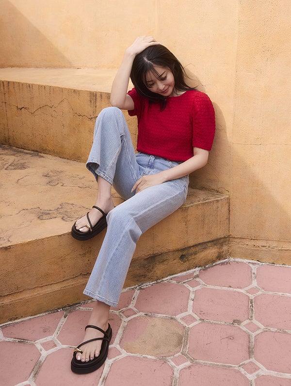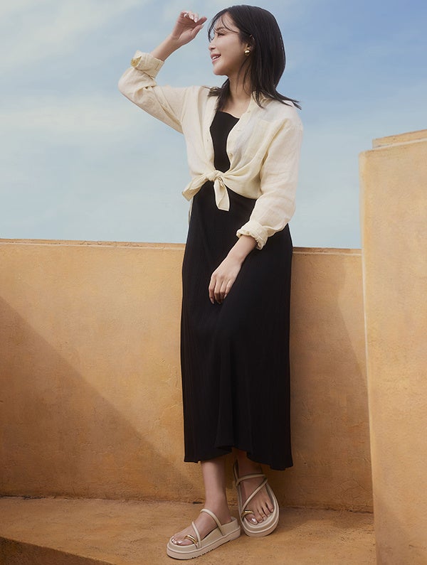 ◼️ 休井美郷さんが着こなす、小柄女性のための最新サンダルスタイル