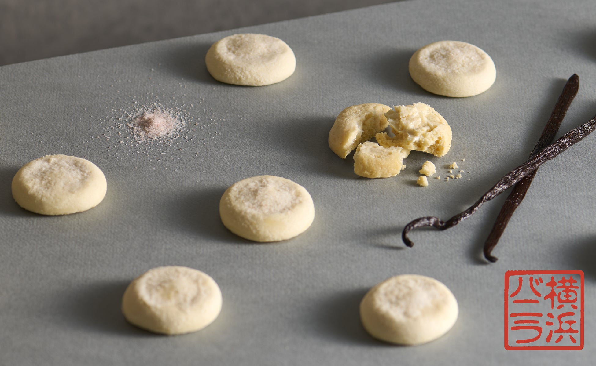 天然ブルボンバニラエキスと、ローステッドフラワーの工程を踏んだ香ばしい小麦粉を使用。ダブルベイキング製法で焼き上げることで、舌の上で“ほろっ”と崩れる繊細な口溶けが際立つ、新食感のサブレが出来上がりました。